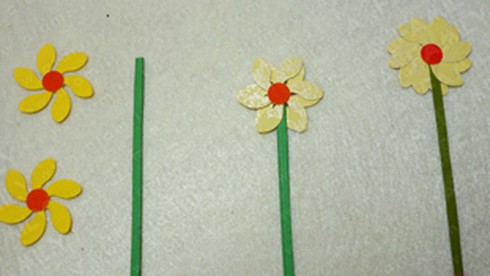 Bước 2: Dán lá và hoa vào thân để tạo thành một bông hoa hoàn chỉnh.