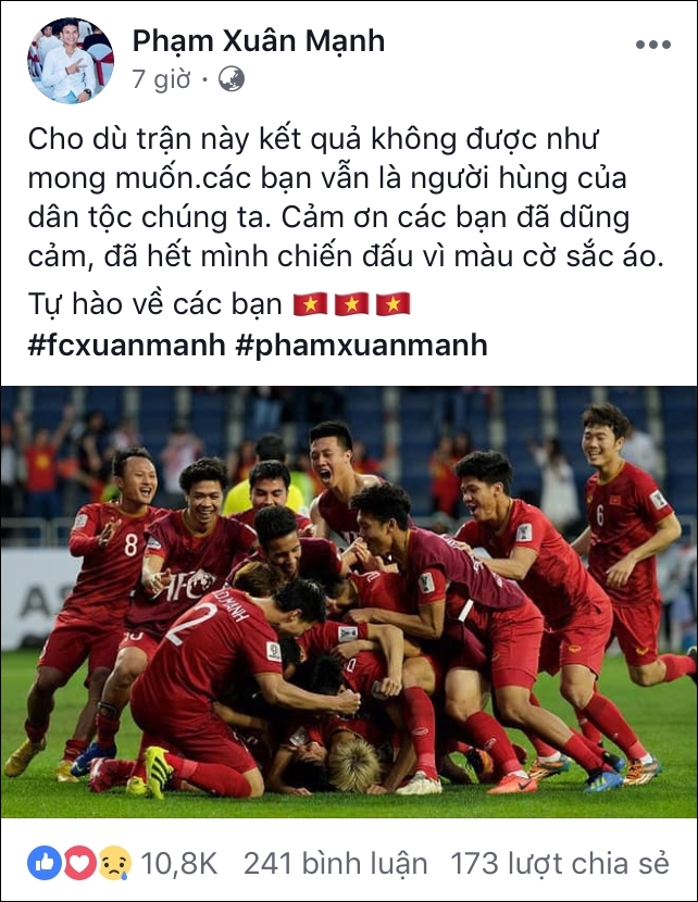 Ngay sau trận đấu tối qua, trên trang cá nhân của mình, các cầu thủ đã đồng loạt chia sẻ cảm xúc. Công Phượng, Duy Mạnh, Xuân Mạnh… đều gửi lời cảm ơn chân thành đến các cổ động viên đã yêu thương và theo dõi các trận đấu suốt từ mùa giải đến giờ. Dù có chút tiếc nuối nhưng các cầu thủ hứa sẽ luôn cố gắng và quyết tâm hơn cho những mùa giải sau.