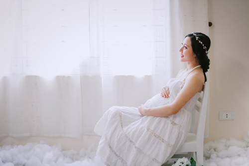 Vì thân hình nhỏ bé, ở tuần 25 vẫn chưa thấy rõ bụng nên đi đâu chị cũng ưỡn ra để mọi người tránh va vào. Cứ thế thấm thoát đã đến tuần 30. “Hiện tại công việc chính mỗi ngày của mẹ là lên lịch xem hôm nay cần ăn gì, ăn như thế nào để con được hấp thụ dinh dưỡng tối đa nhất. Ngoài ra, mẹ còn dọn dẹp nhà cửa nhẹ nhàng để vận động chân tay, rồi nói chuyện, cảm nhận những cái chuyển mình, cơn nấc của Cún. Nội tiết thay đổi khiến mẹ khó kìm chế được cảm xúc của mình, cảm động mẹ cũng khóc, tức giận mẹ cũng khóc hay nghĩ lại chuyện không vui mẹ cũng khóc, mẹ mong Cún đừng ảnh hưởng gì từ cảm xúc đó của mẹ, mẹ cũng cười rất nhiều mà!”.