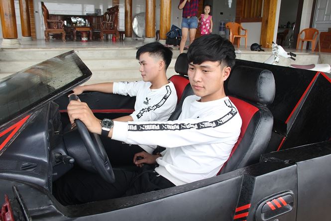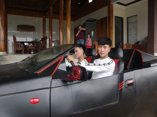 Rất nhiều bạn trẻ đã đến nhà Trung và Kiên để xem chiếc xe. Nhiều bạn còn xin được ngồi, thử lái chiếc siêu xe đặc biệt này.