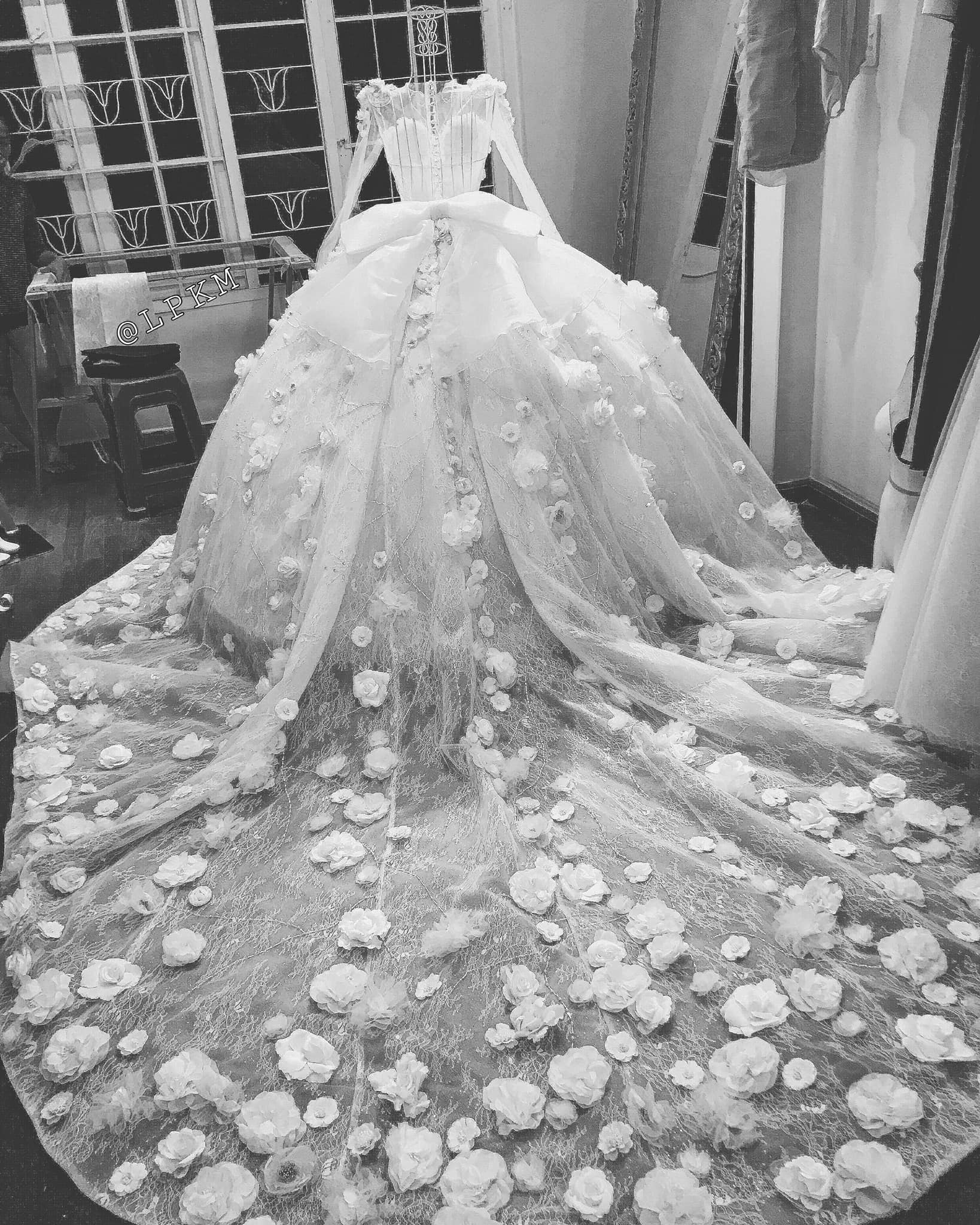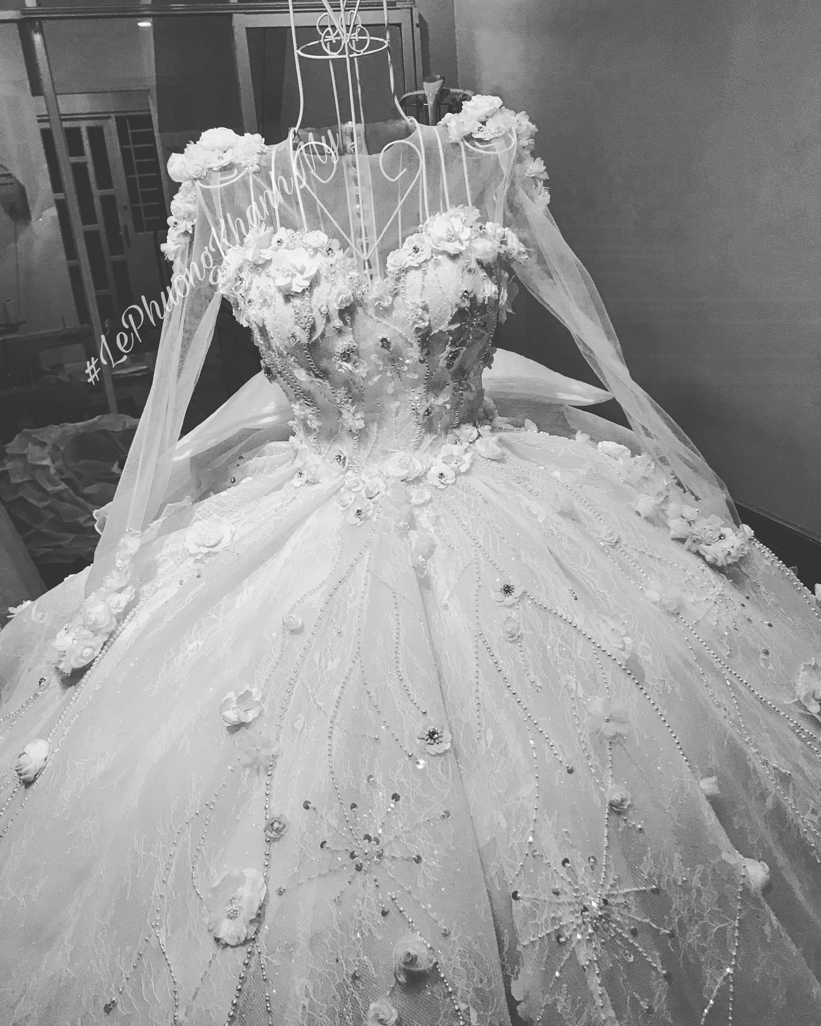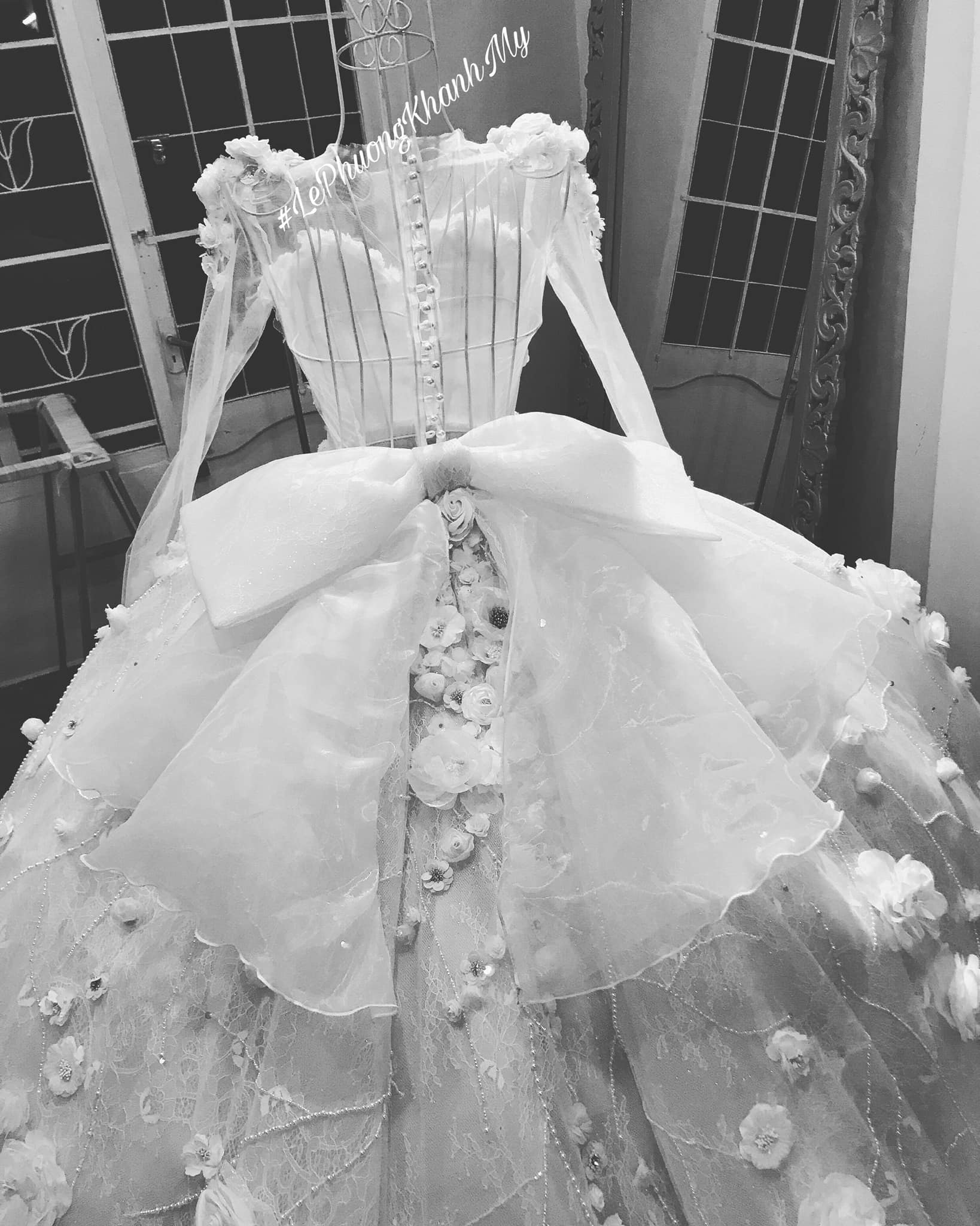 Được biết, chiếc váy cưới này do chính Vân Navy lên ý tưởng, thiết kế và bắt tay vào thực hiện. Ảnh: FBNV.