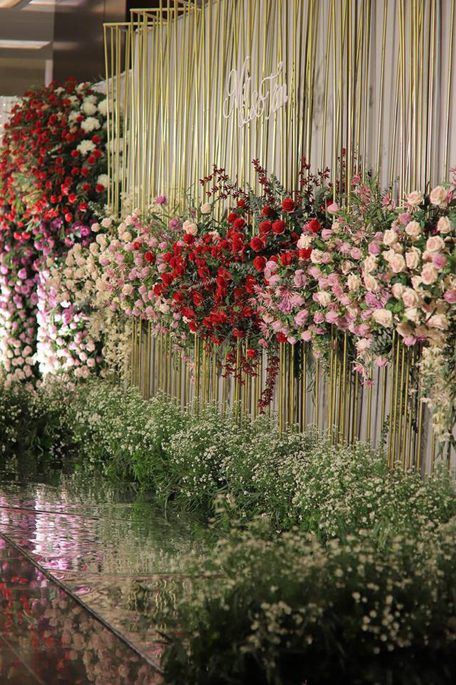 Toàn bộ không gian tiệc cưới của Vân Navy - Tân Trần được trang trí bằng hoa tươi. Ảnh: VNN.