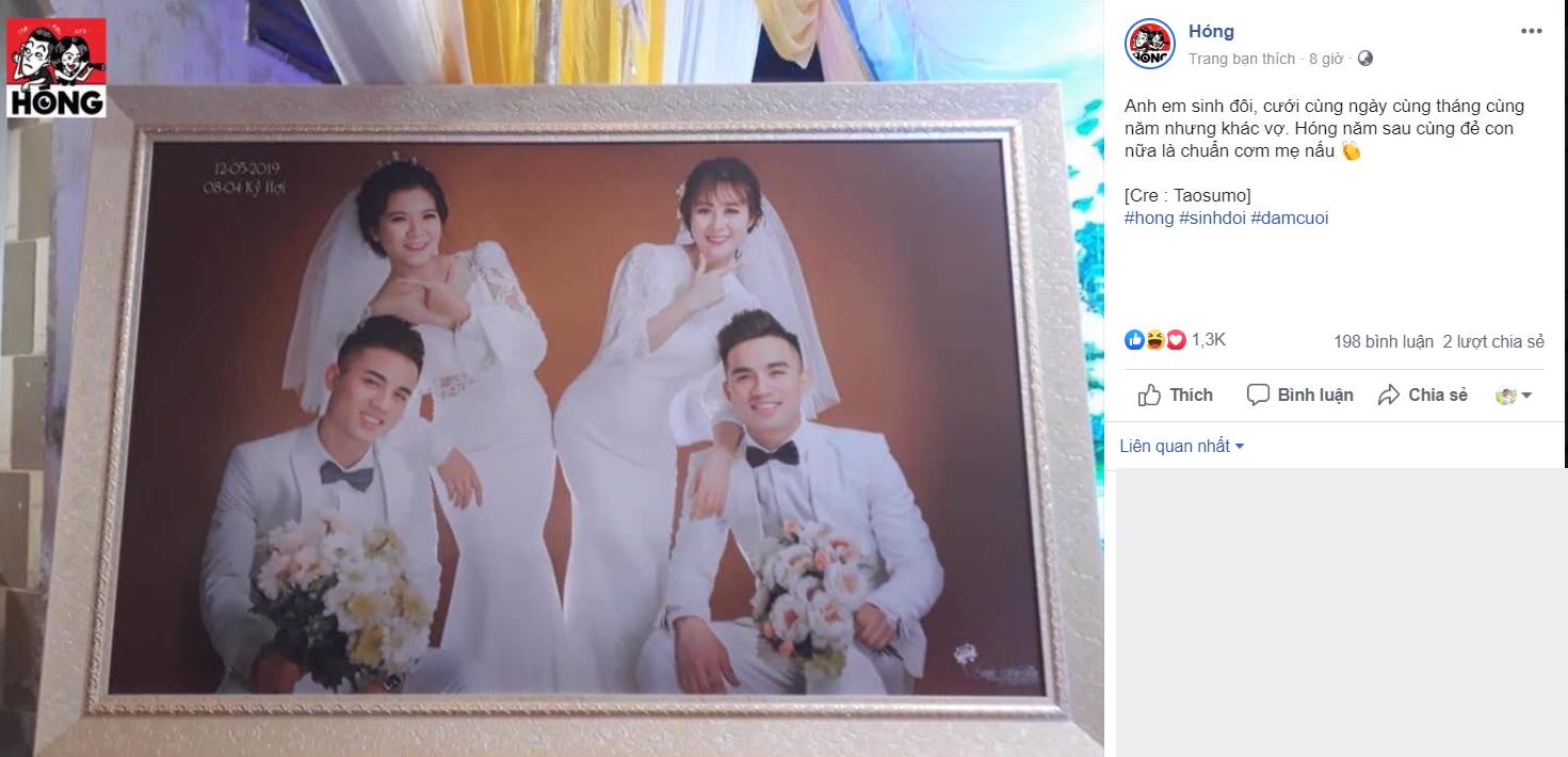 Hình ảnh 2 anh em sinh đôi cùng tổ chức đám cưới 1 ngày gây chú ý trên mạng xã hội.