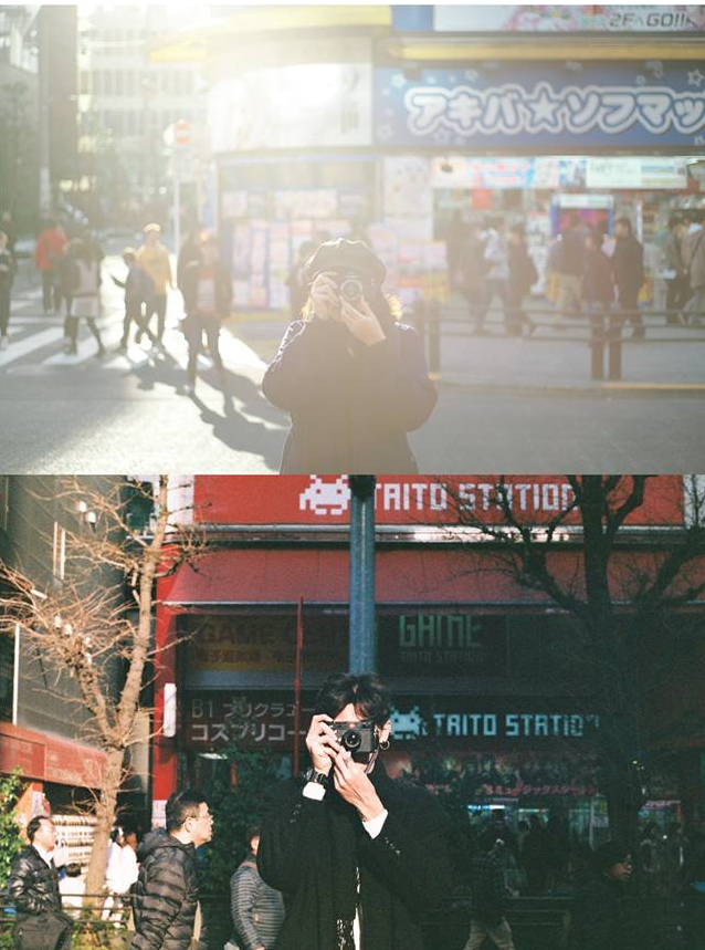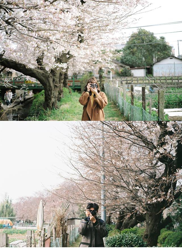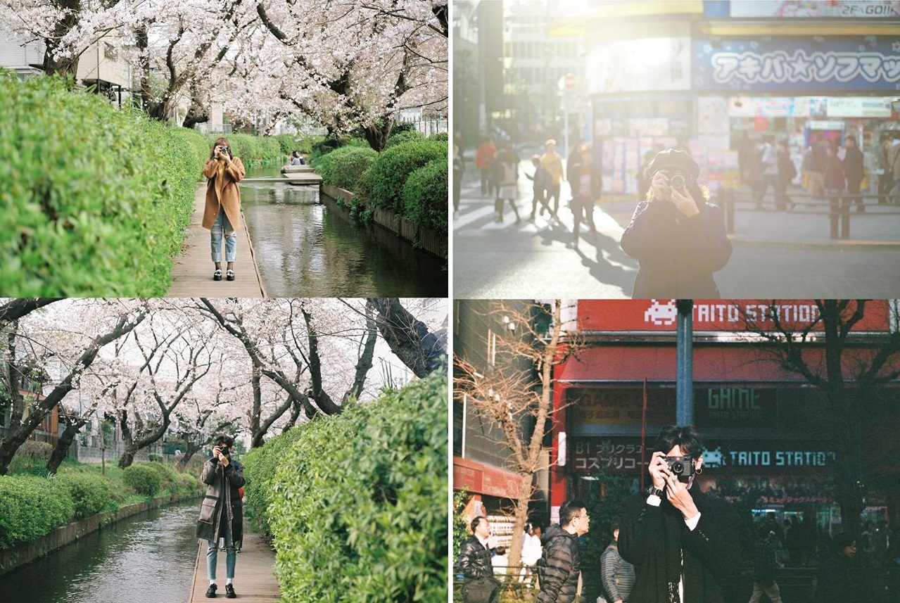 Chuyến đi đầu tiên được chụp theo concept này là vào 6 tháng trước, tại Nhật Bản, cùng 2 ”người bạn đồng hành” là máy ảnh Leica và Olympus. Trong tiết trời siêu đẹp của Nhật Bản, cả hai không để lộ bất kỳ tấm ảnh chụp chung lộ mặt nào. Thay vào đó, họ đứng đối diện nhau, chụp ảnh cho nhau, với sự tương đồng hoàn hảo của cảnh vật, ánh sáng, quần áo và cả cách tạo dáng.