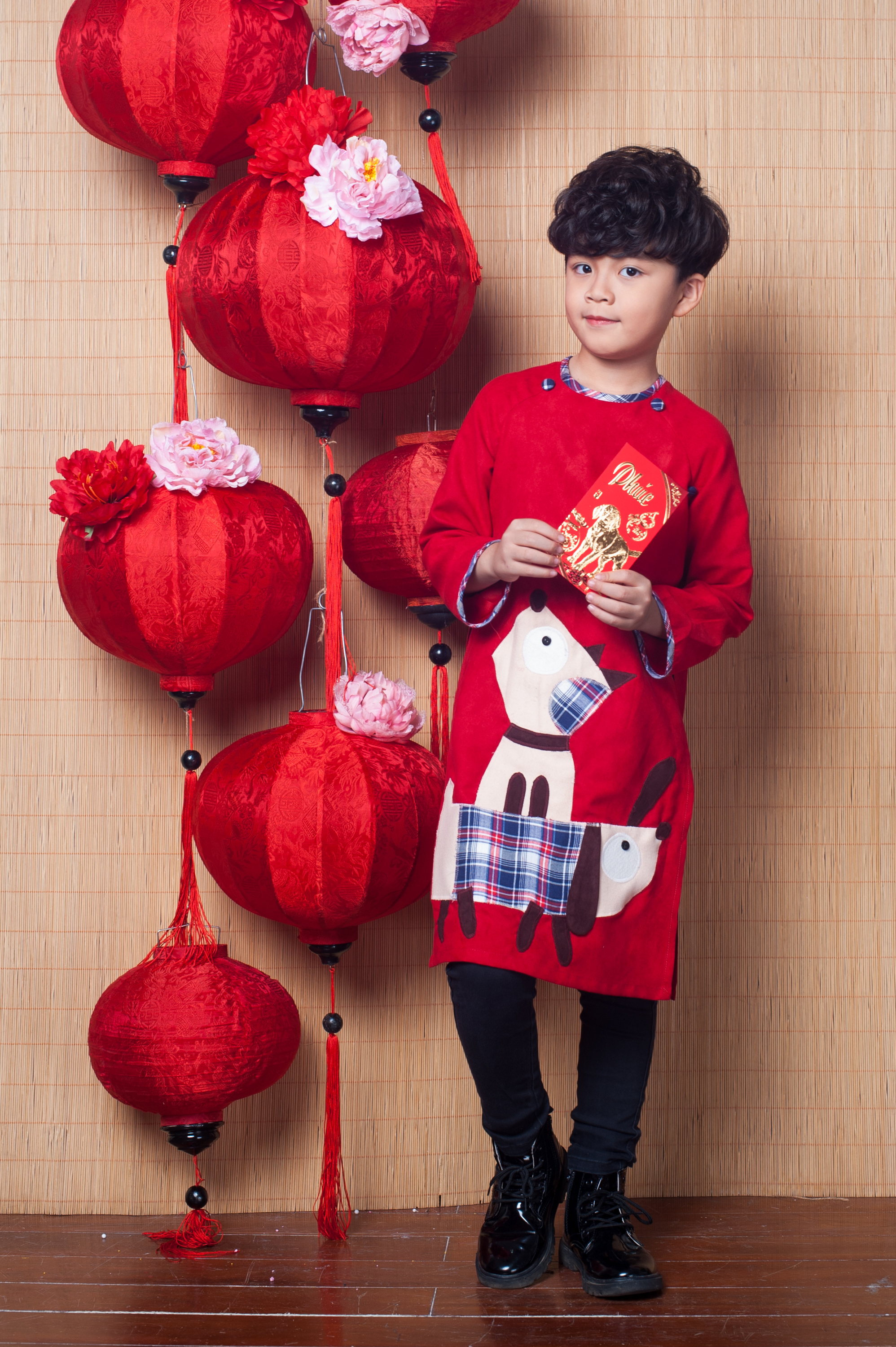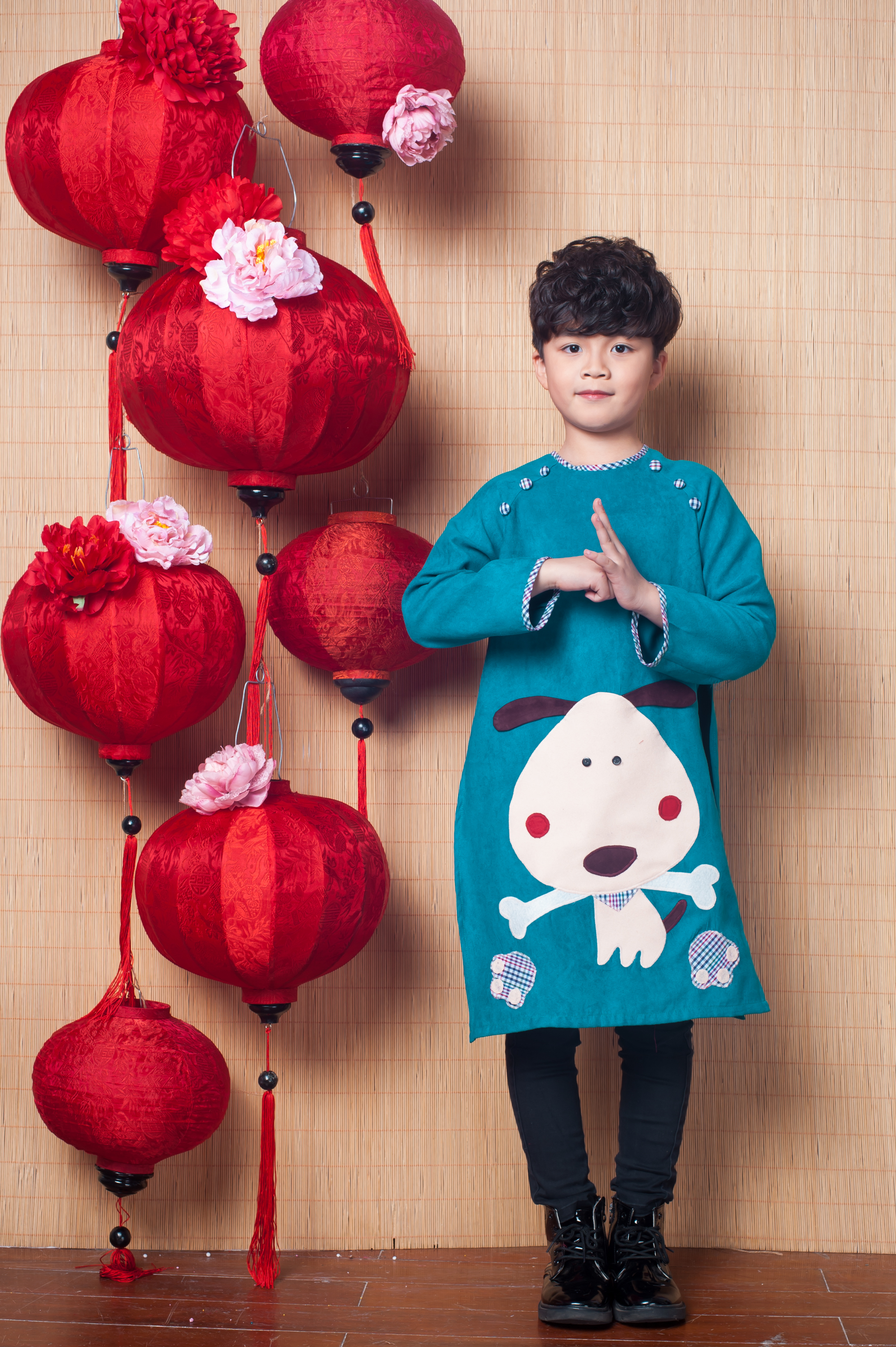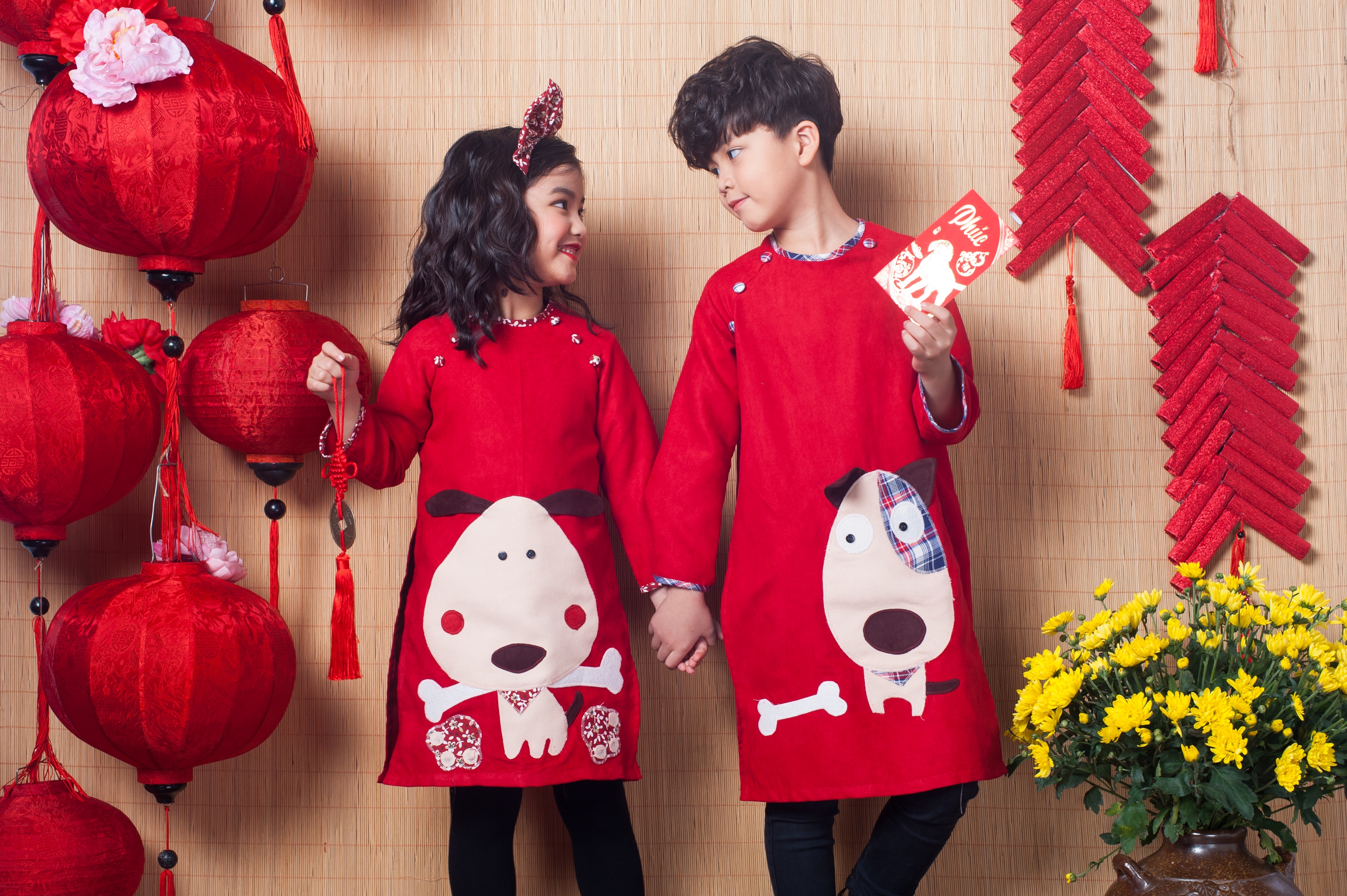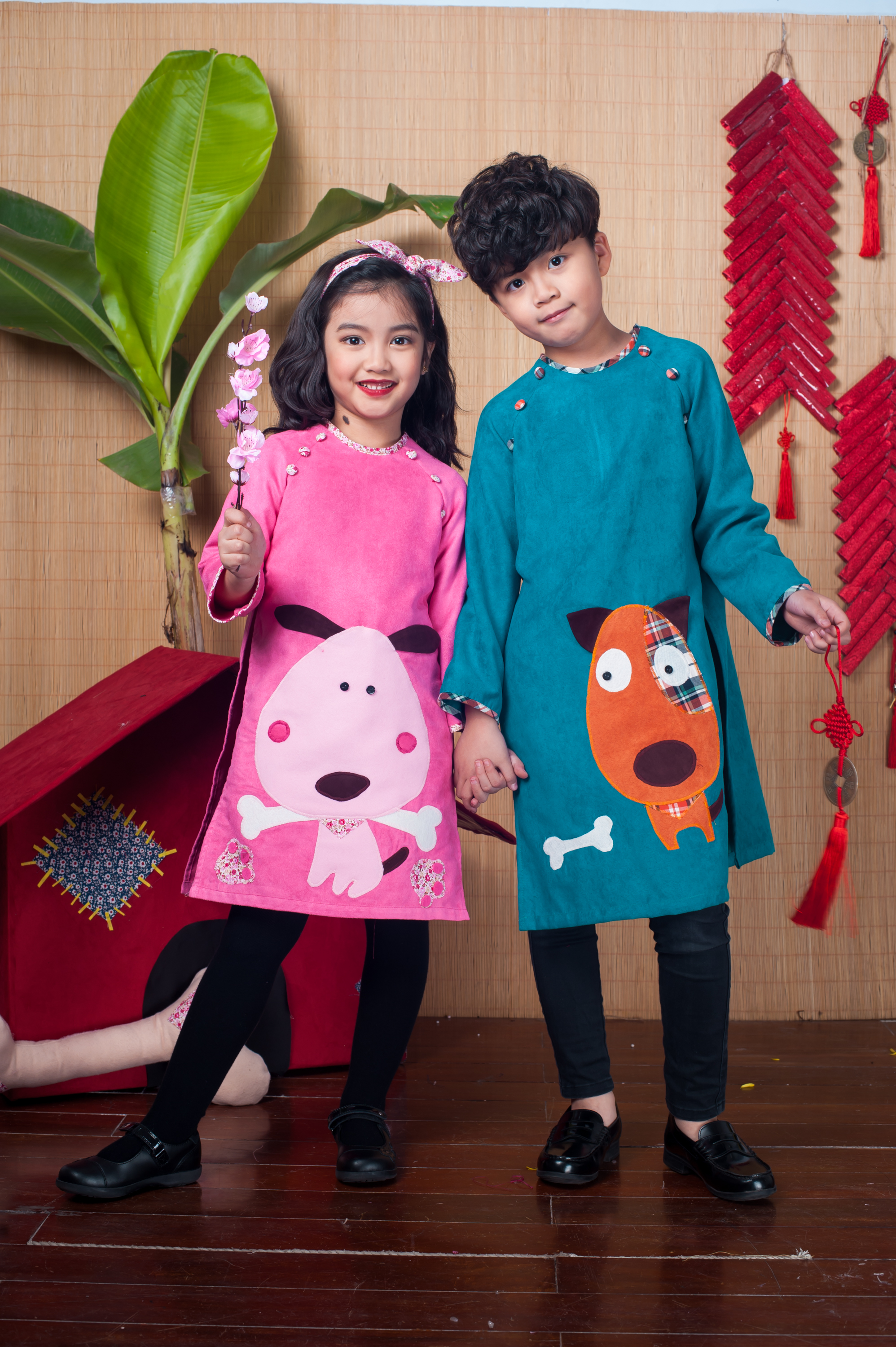 Cặp đôi siêu mẫu nhí nổi danh Hà thành vừa thực hiện những hình ảnh đẹp tựa trong tranh với chủ đề mừng xuân Mậu Tuất 2018. Trang phục lần này của các bé là những chiếc áo dài nằm trong BST “Tết Con cún” với thiết kế khá độc đáo của Ó Boutique. Điểm đặc biệt của chúng là vạt áo được thêu những chú cún ngộ nghĩnh.