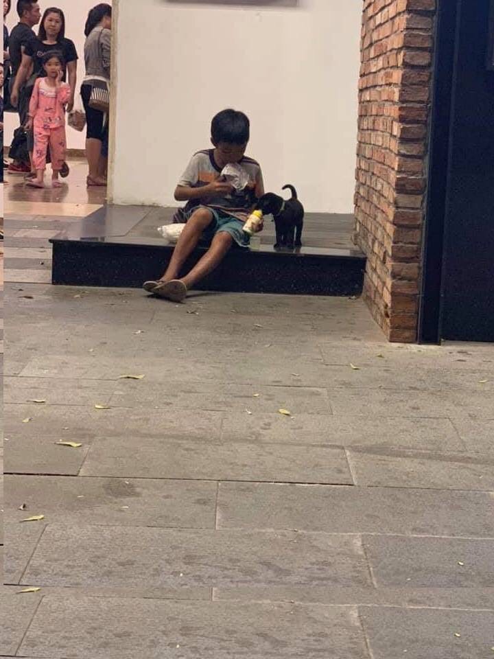 Khoảnh khắc này đã khiến nhiều người cảm thấy nhói lòng và xót xa. Cậu bé chẳng giàu có gì nhưng sẵn sàng chia túi sữa duy nhất cho chú cún.