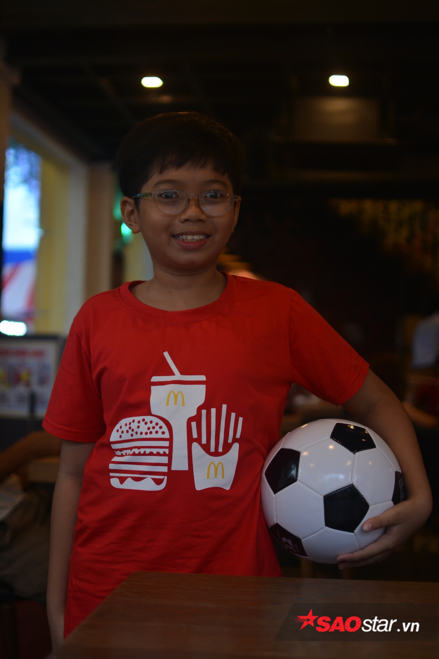 Đó là cậu bé Nguyễn Lê Thái Sơn (học lớp 5, trường TH Chu Văn An, quận Bình Thạnh, TP.HCM). Trước đó, Sơn đã tham gia vào trình tìm kiếm mascot (linh vật) cho các đội tuyển ở World Cup 2018 do Tập đoàn McDonald's và FIFA tổ chức. Theo ban tổ chức, Thanh Sơn đã vượt qua hơn 4.000 bạn nhỏ khác để nhận được tấm vé tham dự trận Chung kết qua phần bốc thăm.