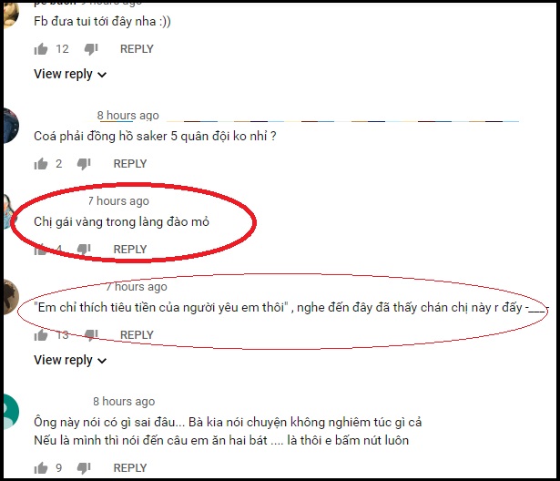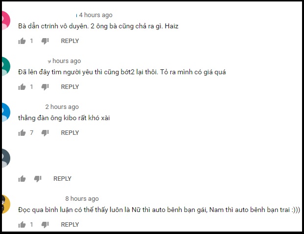 Bạn Ngọc Dung thì thẳng thắn: ”Mình tin là có sự cắt ghép bớt ở đây, bởi mình không tin rằng có thanh niên lại muốn ì kèo tiền 2 bát phở. Đọc các comment bên dưới ai cũng cho rằng cả hai đều có lỗi. Khi mình xem lại thì thấy cô gái này có 1 số phát ngôn như ”Em tiêu tiền rất là tốt đấy!”, ”Chưa cưới mà hẹn hò yêu nhau, em vẫn muốn tiêu tiền của người yêu em cơ”, ”Không, nếu anh không trả thì em không yêu anh nữa”. Trong khi chàng trai kia thì đang muốn bàn chuyện quan điểm lâu dài, chứ không phải chỉ là 2 bát phở trước mắt”.