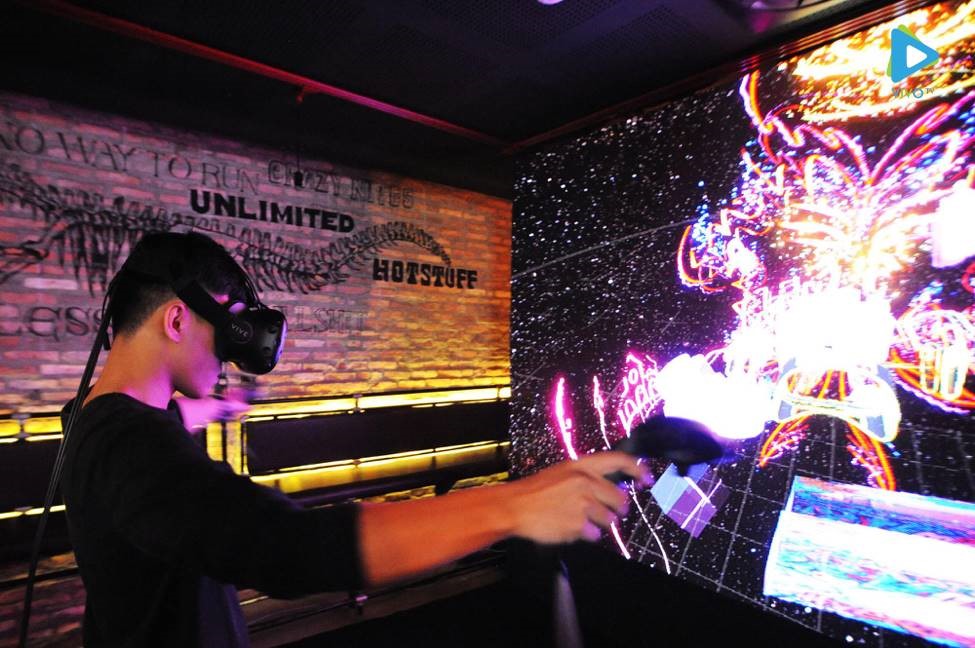 Người tham dự đang khám phá góc Vẽ thực tế ảo (VR Tilt Brush) của Tùng Monkey trong Đại tiệc Sáng tạo Thành thị #VERYSPECIAL Urban Fest.