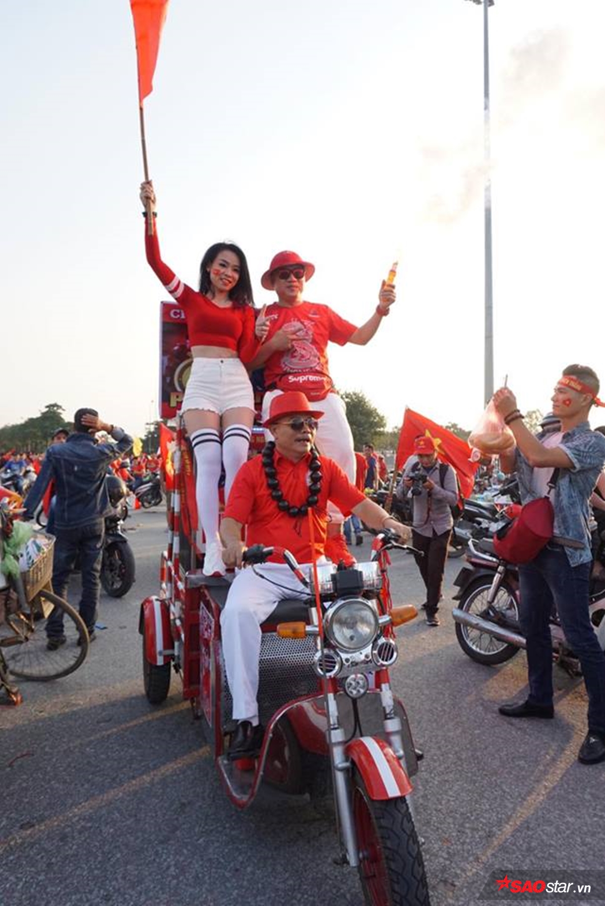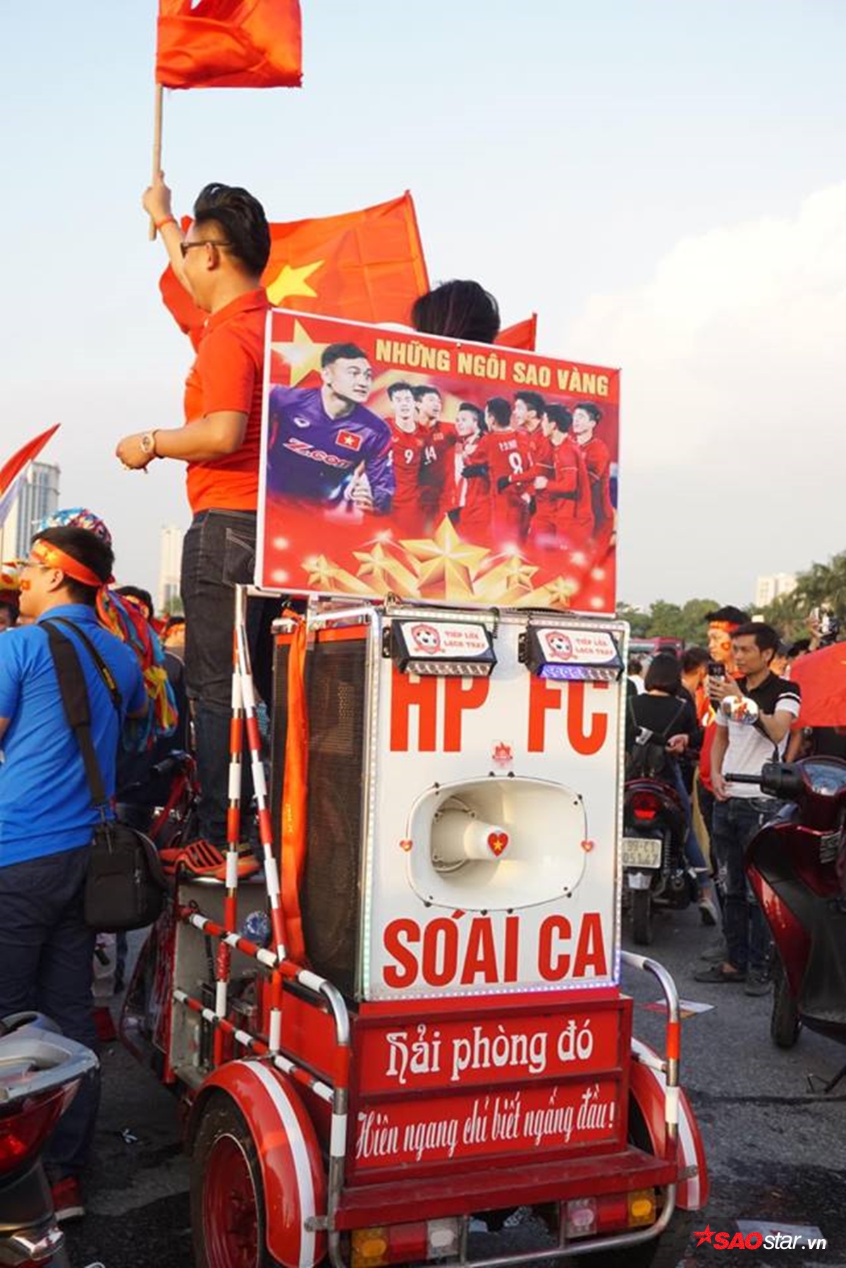 Những chiếc xe ba gác chở đầy hình ảnh cổ vũ đội tuyển Việt Nam.