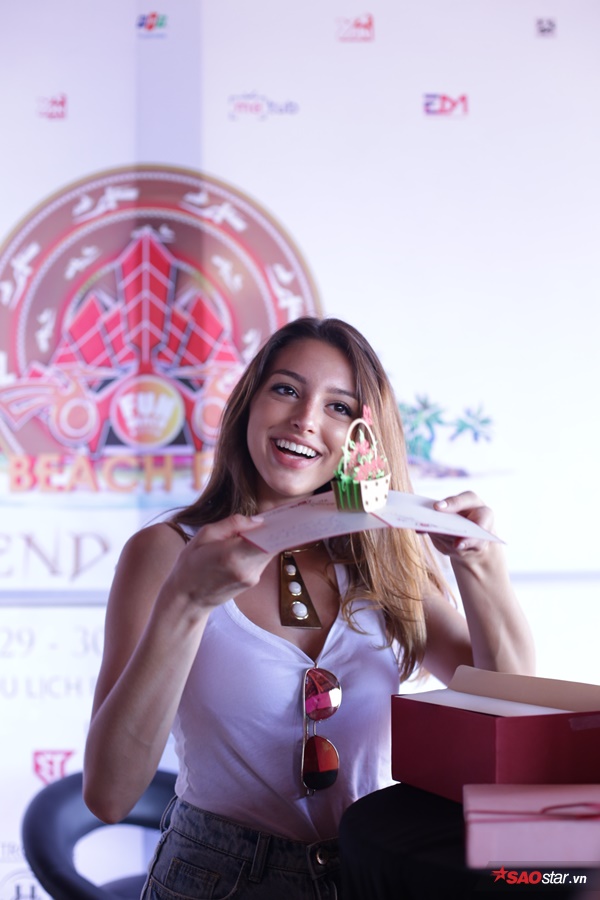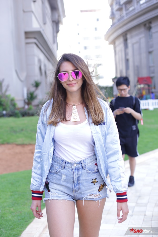 Cô nàng sinh năm 1997 cuối cùng cũng chịu xuất hiện trong trang phục vô cùng trẻ trung năng động và vô cùng phấn khích trước giờ diễn ra Fan meeting tại Vũng Tàu. Bên cạnh đó, Celine Farach không quên gửi lời chào tới độc giả Saostar.