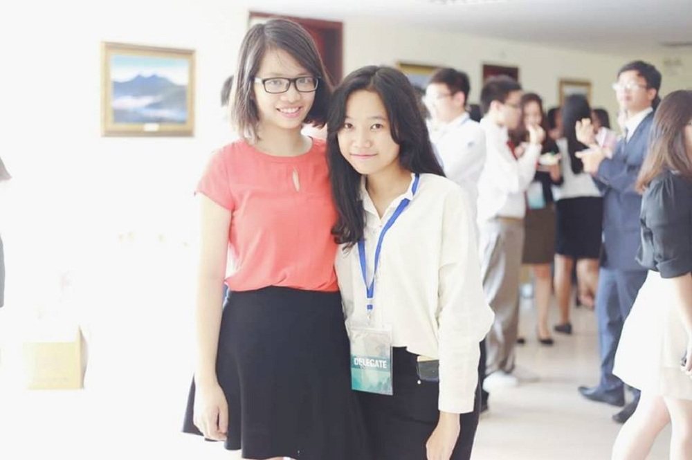 Hoài Anh (phải) tham dự VYMUN 2016.