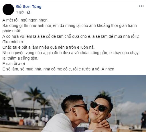 Mới đây, trên trang cá nhân của Sơn Tùng, người yêu cùng tham gia chương trình Người ấy là ai với Đức Hiền đã chia sẻ dòng trạng thái với những câu từ vô cùng xúc động trước sự ra đi của chàng trai bạc mệnh này.