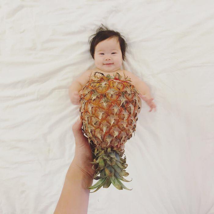 Trong nhà có một đứa trẻ là tất cả thành viên đều dành tình thương cho bé. Từ khi bé ra đời, bố mẹ luôn muốn ghi lại mọi khoảnh khắc từ vui cười cho đến khóc tu tu. Thế nhưng chúng không bao giờ chịu nằm yên một chỗ để bố mẹ chụp cả. Cộng thêm nhiều bé gặp người lạ rất e dè, vậy tại sao bố mẹ không mở một studio mini tại nhà dành riêng cho bé. Nghe có vẻ lớn lao nhưng dụng cụ rất đơn giản chỉ cần một chiếc điện thoại, một ít rau quả.
