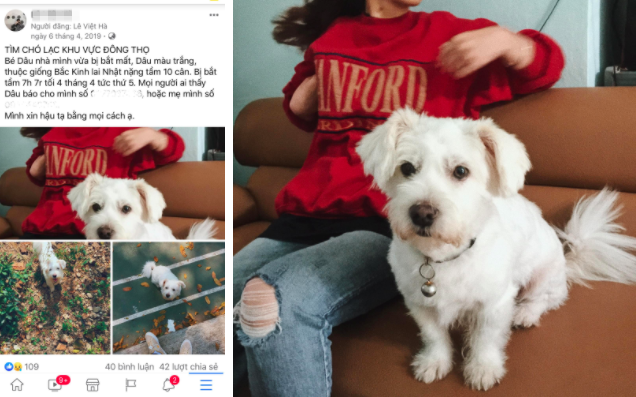Anh L.V.H từng đăng bài tìm chó lạc 1 năm trước