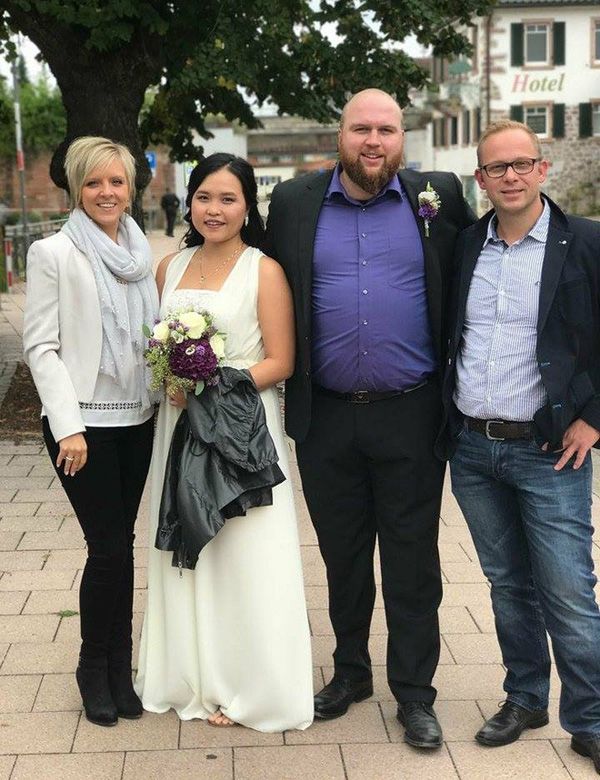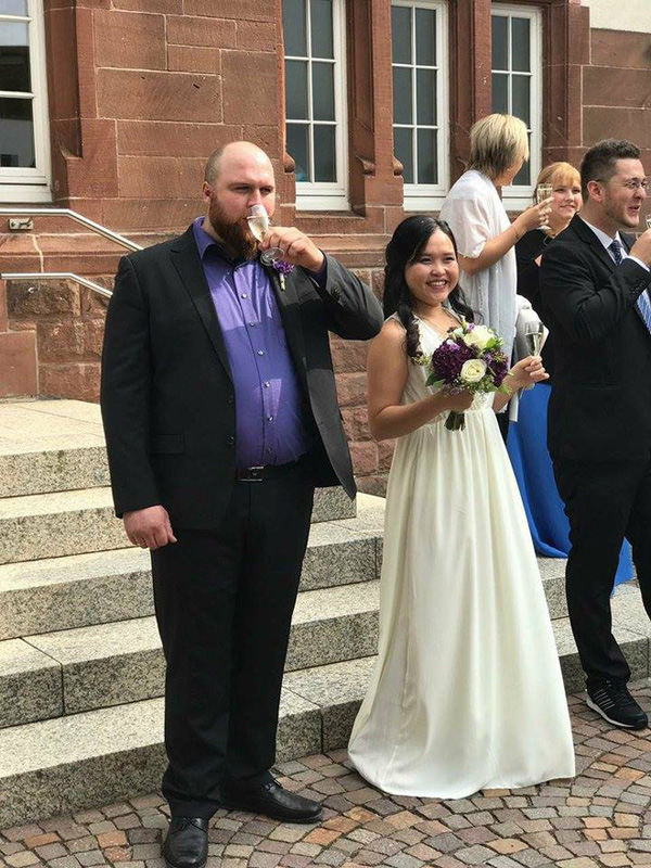 Ở Đức người ta rất quan trọng lễ cưới, đàn ông thì rất sợ cưới vợ. Mình từng biết có những gia đình có mấy đứa con rồi vẫn không phải là vợ chồng, rồi sống với nhau cả 10 năm mà không cưới, vẫn chia tay bình thường… Trong khi chồng quen mình chỉ nửa năm đã đòi làm đám cưới, chứng tỏ rằng anh ấy phải yêu mình nhiều lắm', Thơ vui vẻ kể.