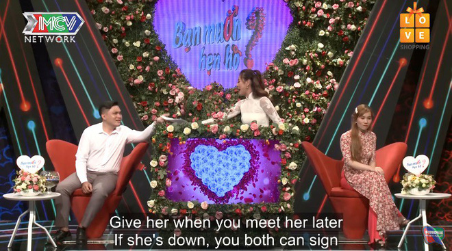Bạn Muốn Hẹn Hò tập mới nhất xuất hiện cặp đôi Nguyễn Thanh Duy (25 tuổi) và Huỳnh Thanh Lộc Đào Tiên (23 tuổi). Màn kết đôi này gây ấn tượng bởi chàng trai đã mang tới chương trình một bản hợp đồng tình yêu rất dài và chi tiết.