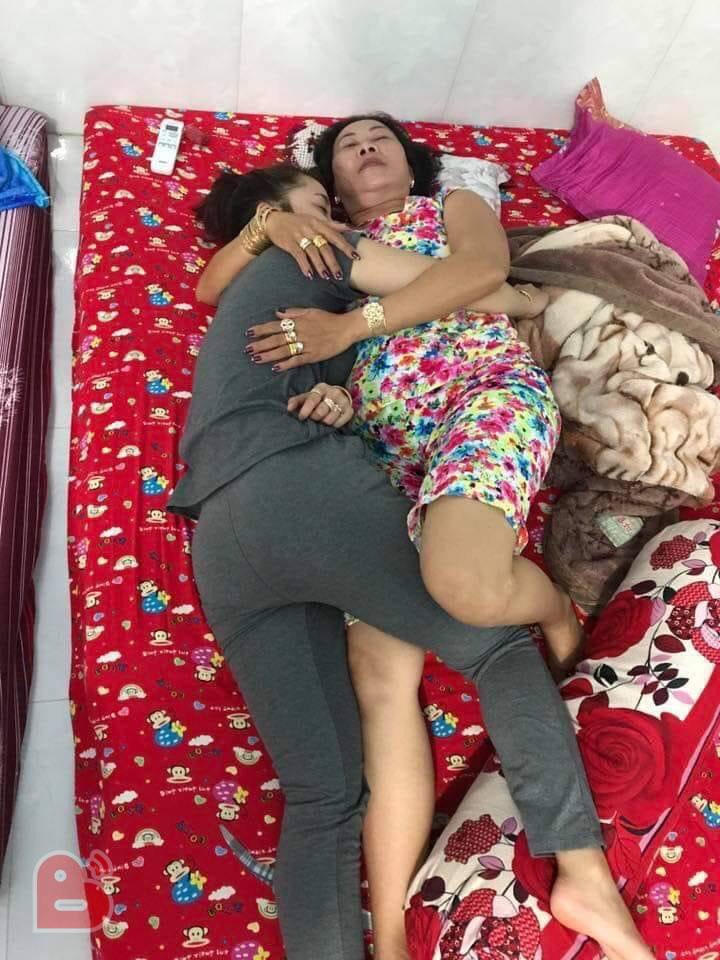 Bức ảnh mẹ chồng ôm con dâu ngủ ngon lành. Ảnh: Beatvn