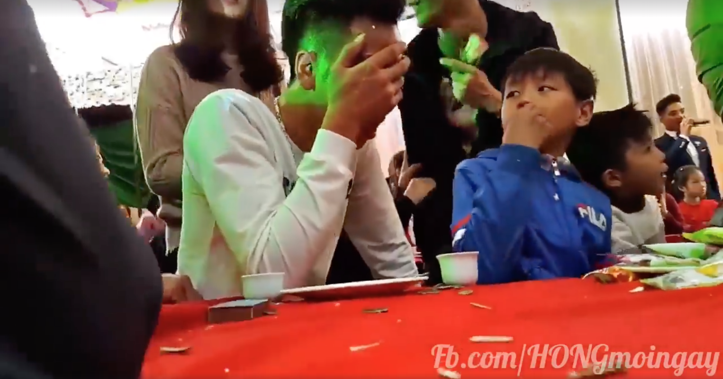 Trong khi MC ở trên sân khấu đang giới thiệu cô dâu chú rể với toàn thể quan khách, thì ở dưới bàn tiệc, chàng trai ôm mặt khóc nức nở không ngừng. Rất nhiều người xung quanh đã đến bên dỗ dành, động viên chàng trai nhưng có vẻ anh ta chẳng còn để tâm đến điều gì nữa, ngày càng khóc to hơn.