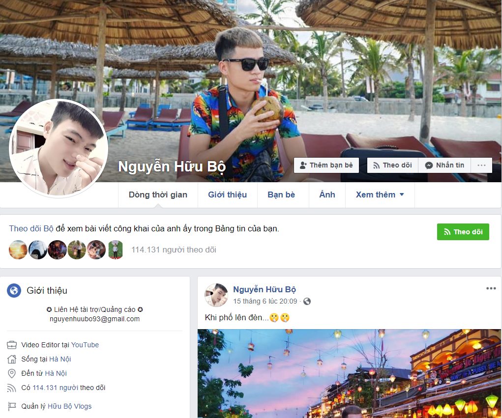 Trang facebook cá nhân với hơn 114K lượt theo dõi.