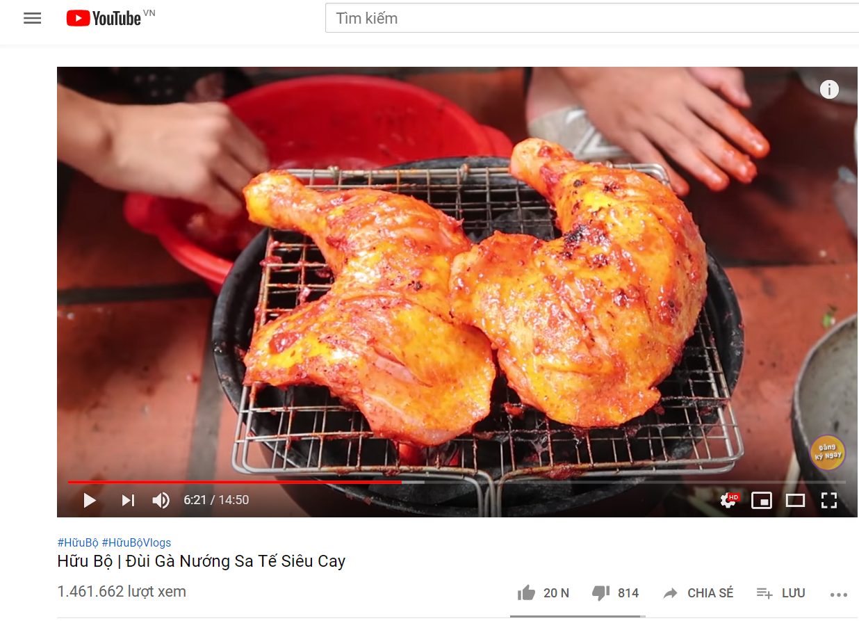 Video “Đùi gà nướng siêu cay” mang đến hơn 1,4tr lượt xem.