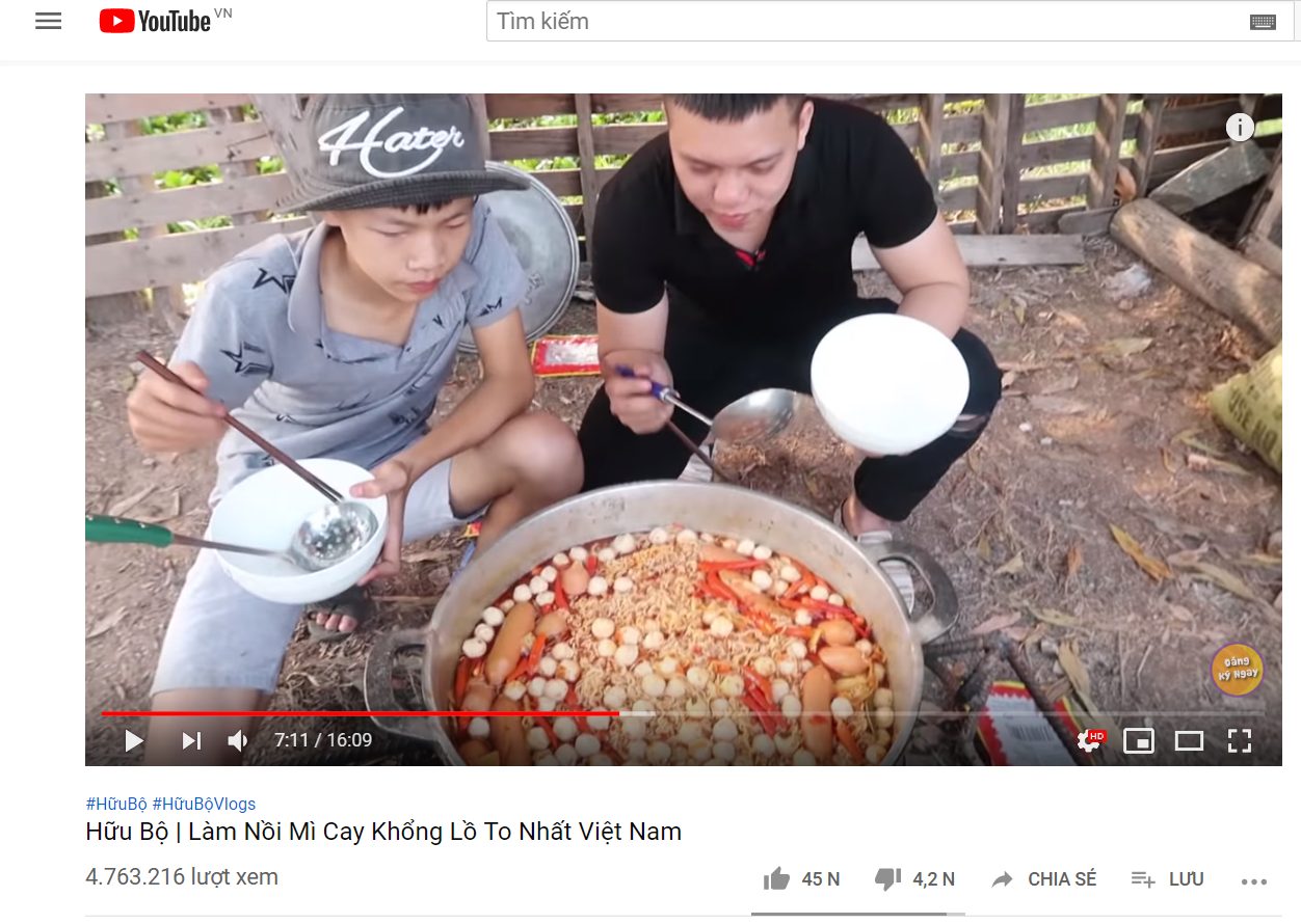 Video “Nồi mì cay khổng lồ” đạt gần 5tr lượt xem.