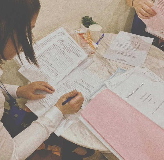Trước đó, cô khoe ảnh đi ký HĐ mua nhà.