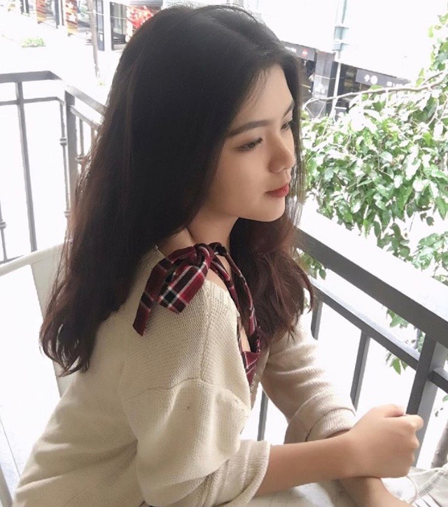 Trong bức ảnh, nữ sinh có góc nghiêng hút người, đôi mắt mơ màng, sống mũi cao thẳng cùng mái tóc xoăn nhẹ. Dù chỉ mặc bộ đồ học sinh bình thường nhưng cô nàng vẫn toát lên vẻ đẹp khiến các chàng trai khó cưỡng lại được.