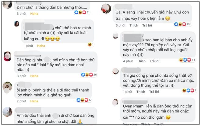”Đây là phản ứng của Chí Nhân (Chí Phèo + tiểu nhân) sau khi vợ cũ Thu Quỳnh liên tưởng câu chuyện của mình với Thư và Vũ trong phim “Về nhà đi con”? Nếu đúng vật thì thật là sao lại có loại đàn ông lèm bèm xấu xa như vậy nhỉ? Khi có phim mới thì PR bẩn bằng cách bôi nhọ vợ cũ, nhưng vợ mới chỉ đụng một cái thì xù lông xù cánh lên. Loại người bất tài mới tìm cách nâng bản thân mình lên bằng cách dìm người khác xuống. Đúng là thằng mặc váy vừa ko có đức cũng chẳng có tài”