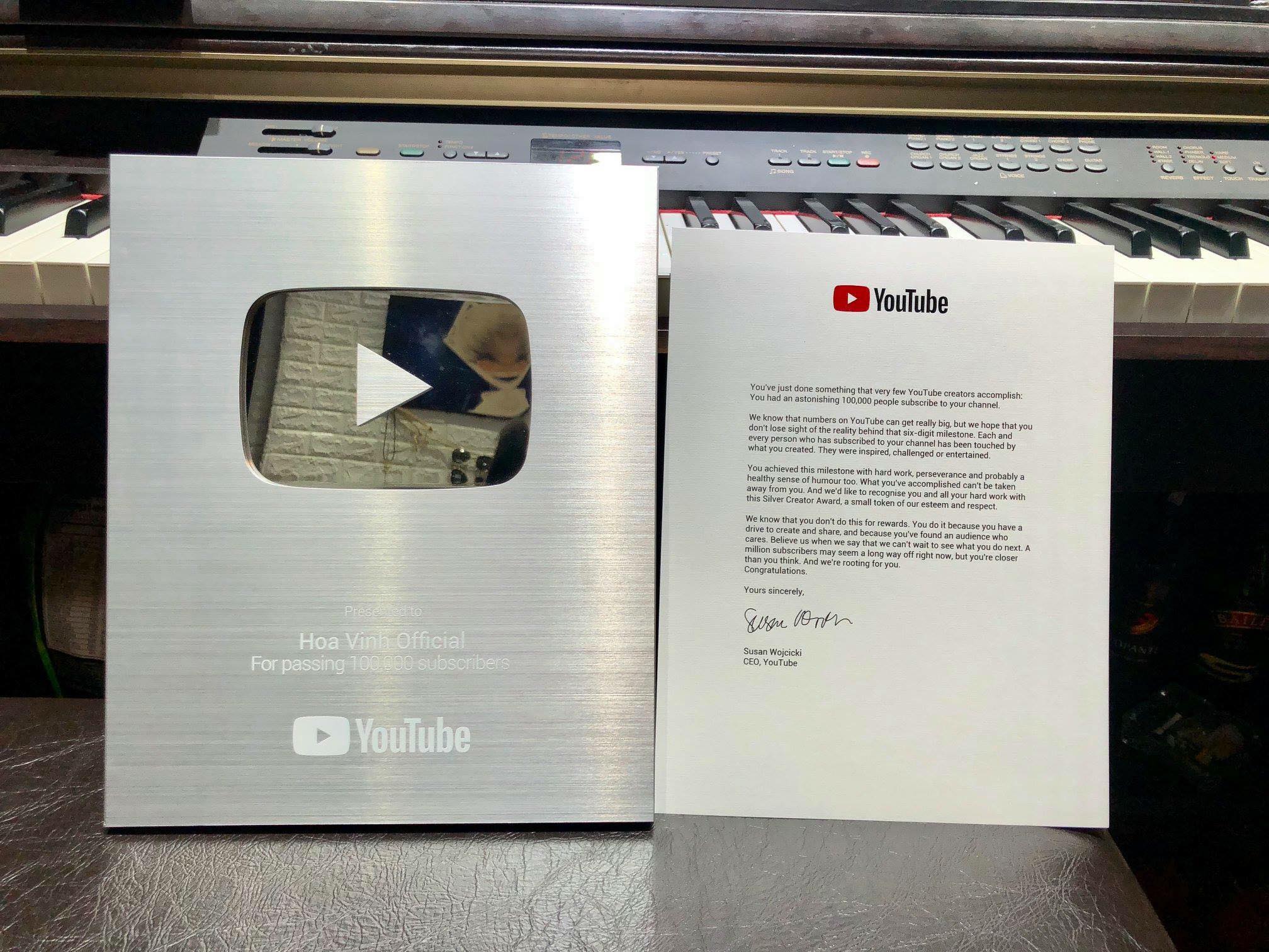 Và mới đây, fans hâm mộ của Hoa Vinh càng thêm háo hức khi anh chàng này đã chính thức được nhận nút Bạc của Youtube dành cho kênh Hoa Vinh Official của mình. Với hơn 500.000 lượt follow trên Youtube, Hoa Vinh đã thừa điều kiện để nhận chứng nhận danh giá này.