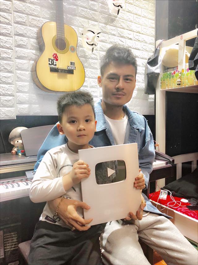 Được chia sẻ trên trang cá nhân của cô em gái là hình ảnh Hoa Vinh đang ôm nút bạc Youtube với cháu trai của mình. Trông anh chàng rất hạnh phúc và hãnh diện.