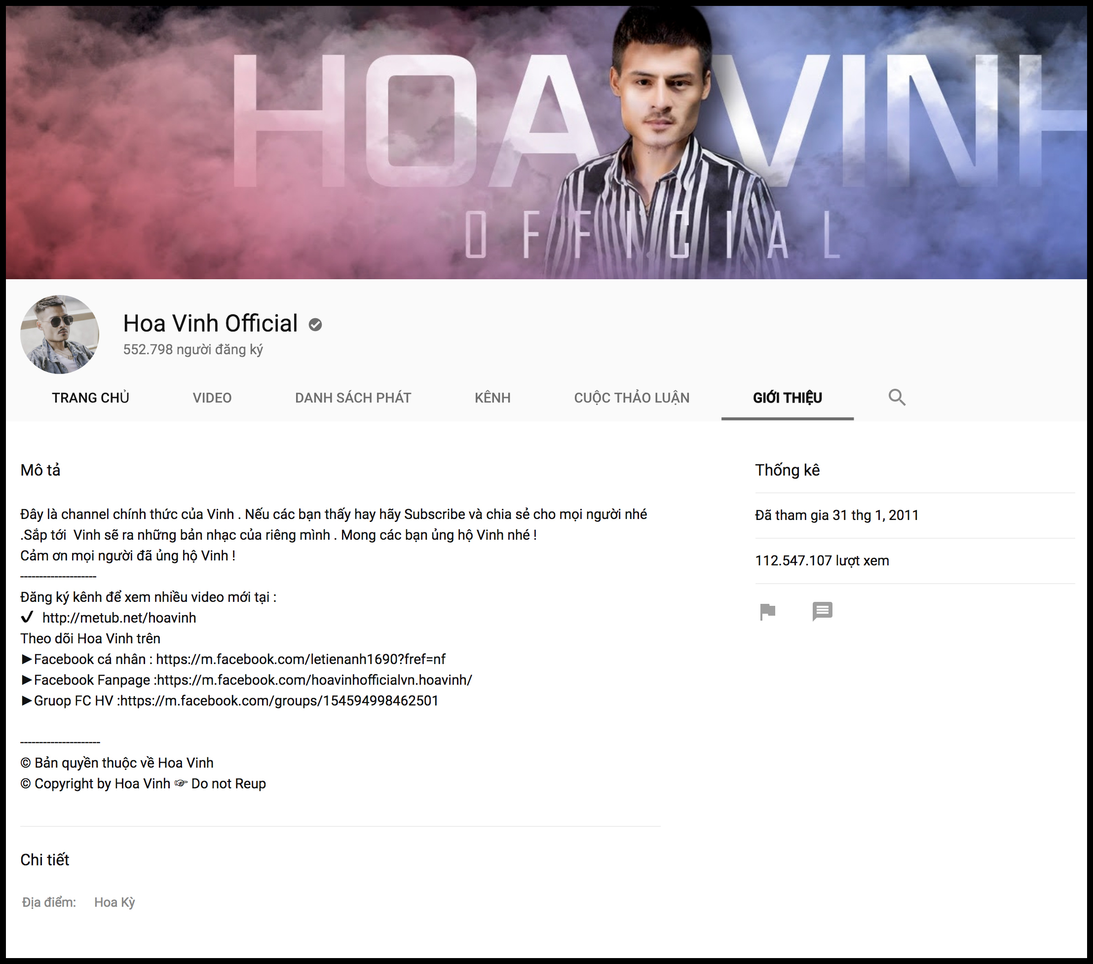 Kênh Youtube chính thức của Hoa Vinh