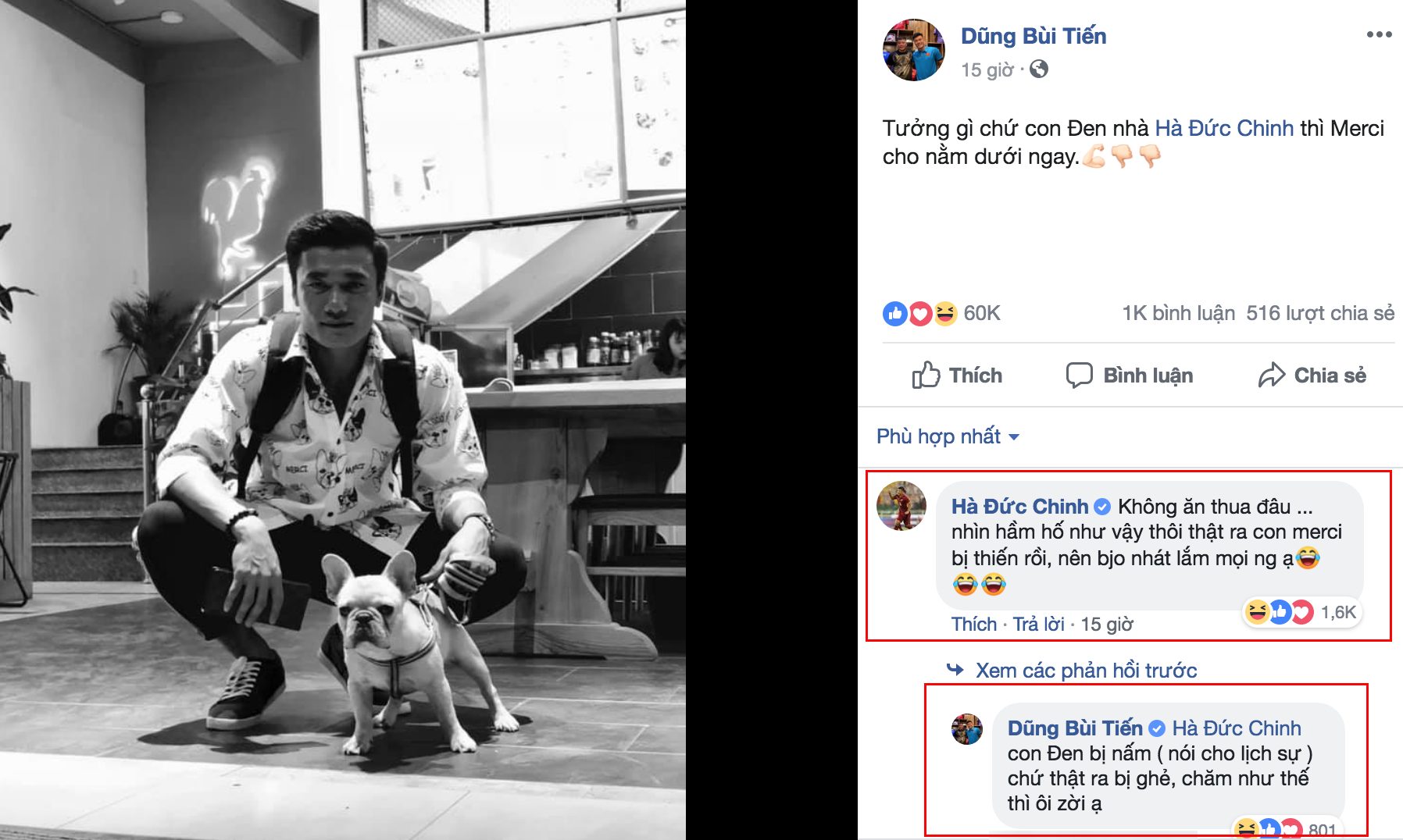 Không chỉ có thế, Hà Đức Chinh còn ra sức bóc phốt chú chó Merci mà thủ môn quốc dân đang nuôi: “Con Merci của thằng Dũng đang bị ốm với ghẻ hay sao ý cả nhà ạ… Nên Đen không sợ mấy thể loại cúm với ghẻ nhé, thịt Merci là cái chắc”.
