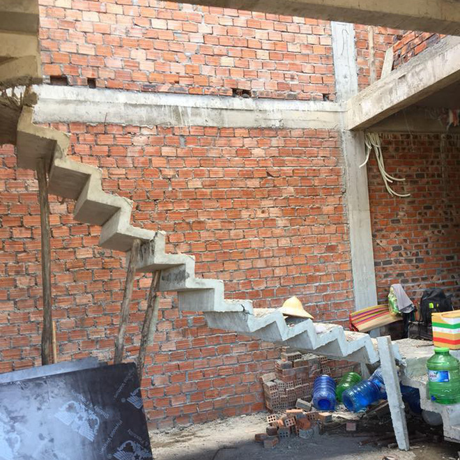 Thoạt nhìn, nhiều người không khỏi ngỡ ngàng với chiếc cầu thang được xây dựng theo kiểu lạ lùng. Là cầu thang nhưng nó đứng không vững, thậm chí còn cần phải đỡ bằng ba chiếc cột gỗ lớn. Không rõ trong quá trình thiết kế, thi công chiếc cầu thang này có vấn đề gì mà nhìn yếu đến mức chẳng thể sử dụng được.