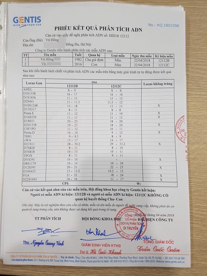 Kết quả xét nghiệm ADN được gia đình chồng mang đi kiểm tra.