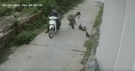 Theo nội dung đoạn clip cho thấy, một chú chó được cho là chó mẹ đang chạy đi chơi cùng đàn con nhỏ thì bất ngờ bị hai thanh niên đi xe máy áp sát, dùng chích điện chích vào khiến chó mẹ ngã ra đường và bị bắt đi mất.