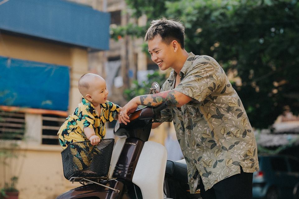 Nói về sự vắng mặt của người mẹ trong bộ ảnh, anh Thọ tiết lộ: “Mình thấy đa phần các bộ ảnh đều là mẹ và bé, những bộ ảnh bố và con thì ít người chụp. Nên lần này mình muốn thay đổi. Mình muốn nói rằng không phải chỉ có mẹ mới thể hiện tình cảm với con qua các bộ ảnh chụp mà các ông bố “bỉm sữa” cũng có thể làm được điều đó”.