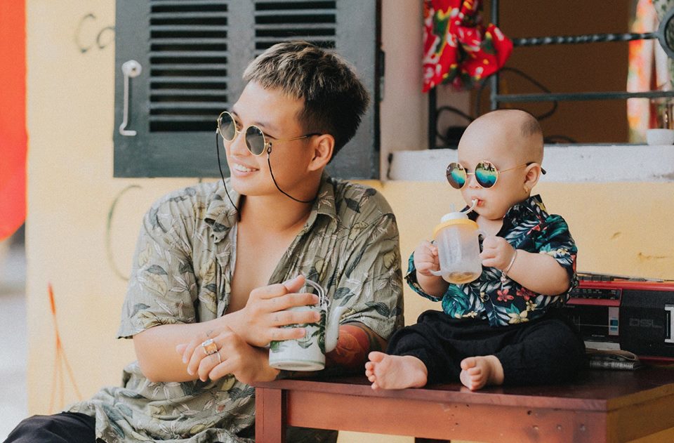 “2 bố con nhìn cưng quá, nhìn em bé kìa, tạo dáng chuyên nghiệp ghê”, bạn M.T bình luận.