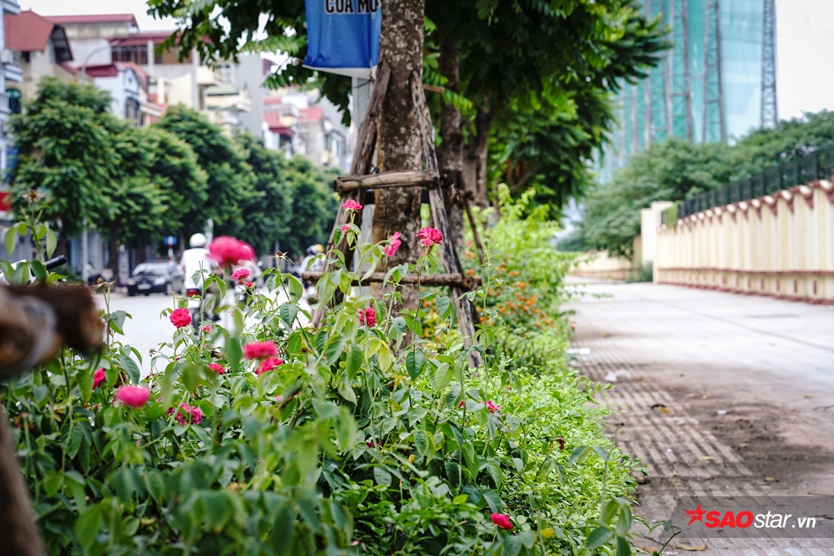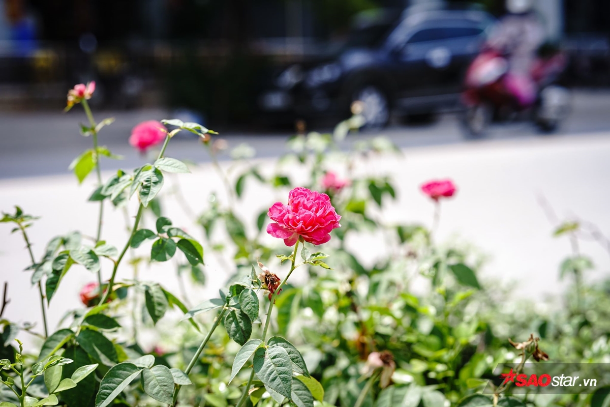 Các khóm hoa hồng được trồng dọc theo vỉa hè đường Lê Trọng Tấn, trên dải ngăn cách giữa lòng đường và vỉa hè.