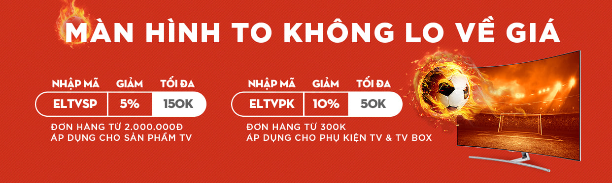Bên cạnh khuyến mãi giảm giá trực tiếp trên sản phẩm, người dùng chỉ cần nhập mã ELTVSP sẽ được giảm ngay 5% giá sản phẩm. Tương tự thế mã ELTVPK cho các phụ kiện TV và TV box.
