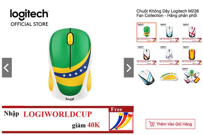 Sản phẩm chuột không dây Logitech M238 Fan Collection đang là hàng hot trên Shopee trong giải bóng đá diễn ra ở Nga. Chuột máy tính gọn gàng, được in hình cách điệu cờ của các đội tuyển bóng đá như Brazil, Argentina, Anh, Pháp, Đức… có giá giảm còn 309.000 đồng so với giá gốc 519.000 đồng.