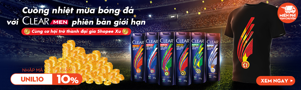 Ngoài ra, Shopee cũng giới thiệu bộ sưu tập Clear Men mùa bóng ở Nga giới thiệu mẫu mã chai mới với các phiên bản đội tuyển tham dự giải bóng đá lớn nhất hành tinh như Đức, Brazil, Anh, Bồ Đào Nha, Pháp… Người mua còn được tặng kèm áo thun thể thao khi mua sản phẩm. Các fan có thể vừa giữ đầu tóc luôn sạch sẽ dễ chịu, vừa thể hiện tình yêu với đội bóng mình hâm mộ với bộ sưu tập Clear Men được bán giá vô địch trên Shopee.