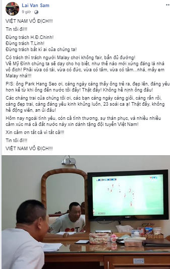 Như thường lệ, sau mỗi trận đấu, MC Lại Văn Sâm lên trang cá nhân thể hiện tình cảm với tuyển nhà