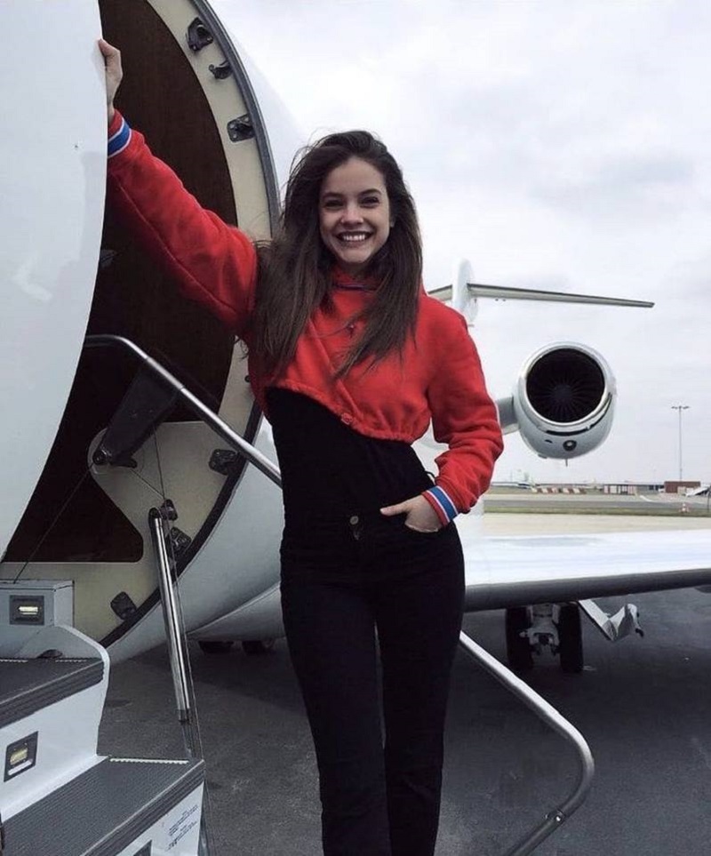 Tiểu thư Barbara Palvin bên chuyên cơ riêng của gia đình.