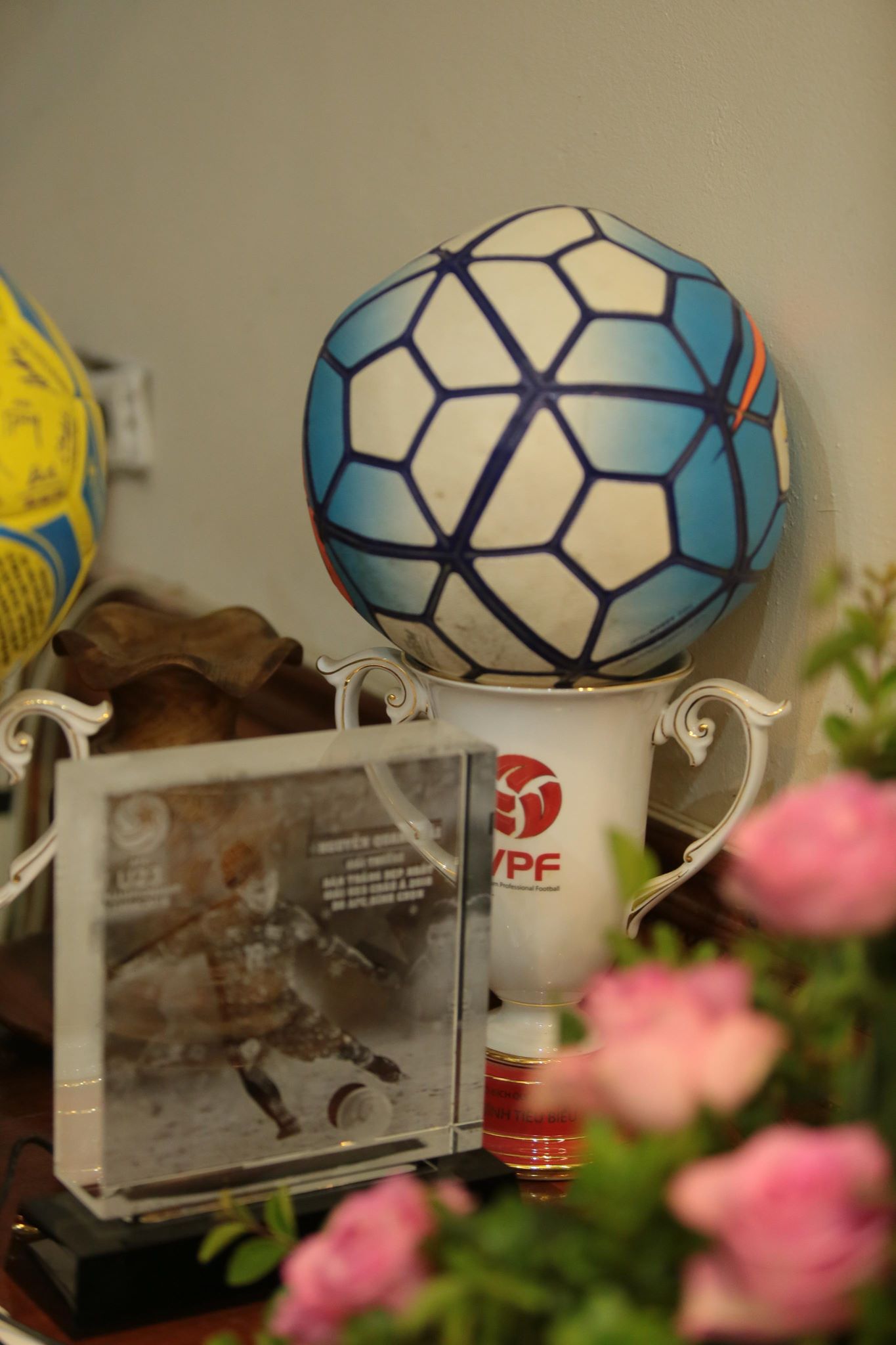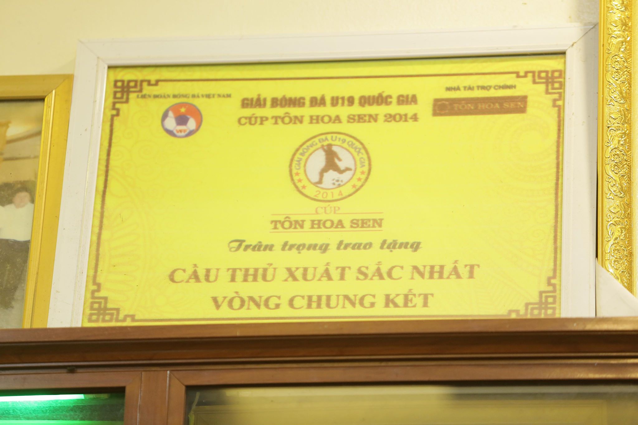 Một kỉ niệm của VPF về “đội hình tiêu biểu” được treo trang trọng trong nhà chàng cầu thủ tài năng