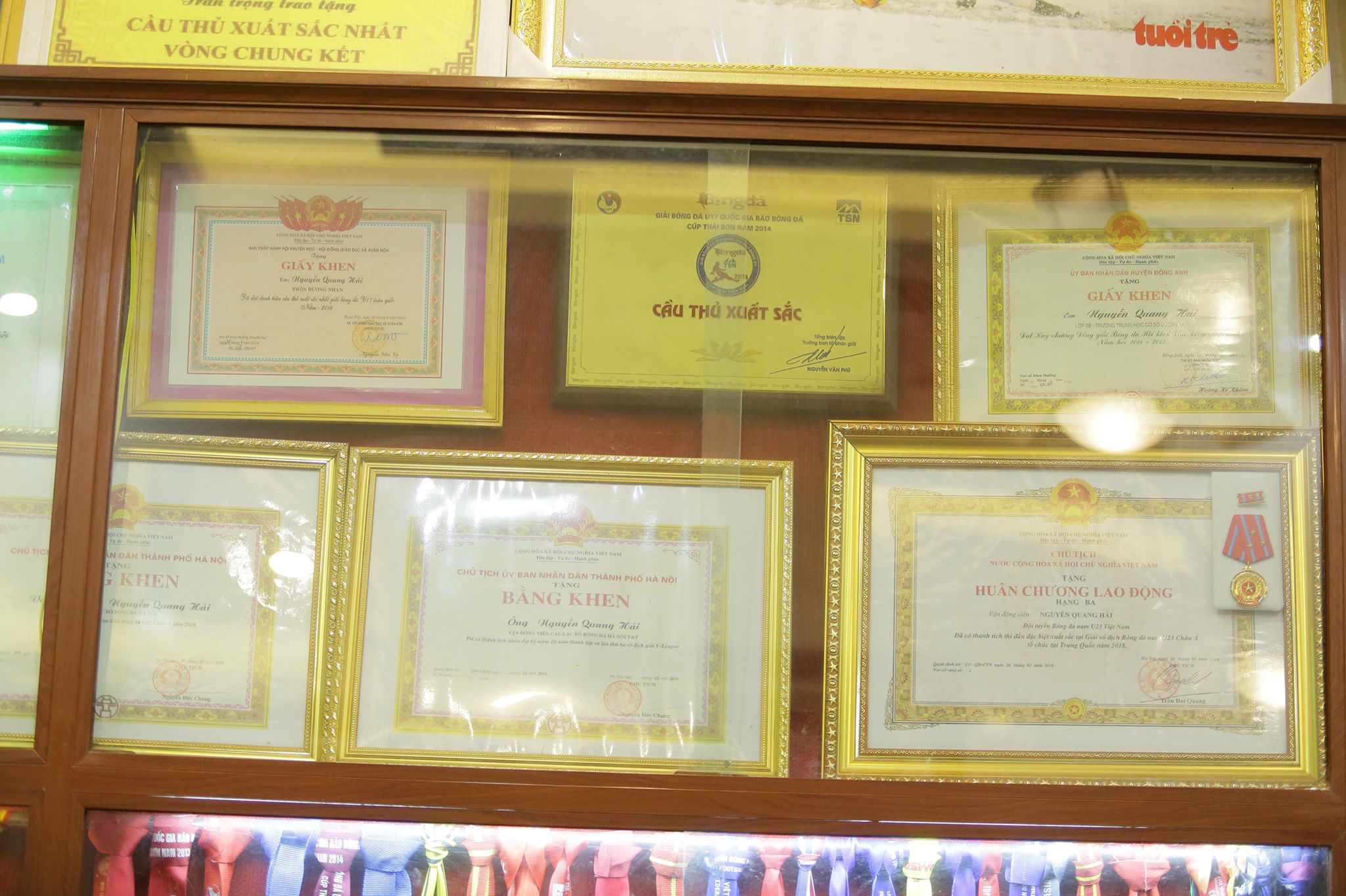 Đây là bằng khen được trao cho Quang Hải từ khi cậu ấy còn là một cầu thủ nhí
