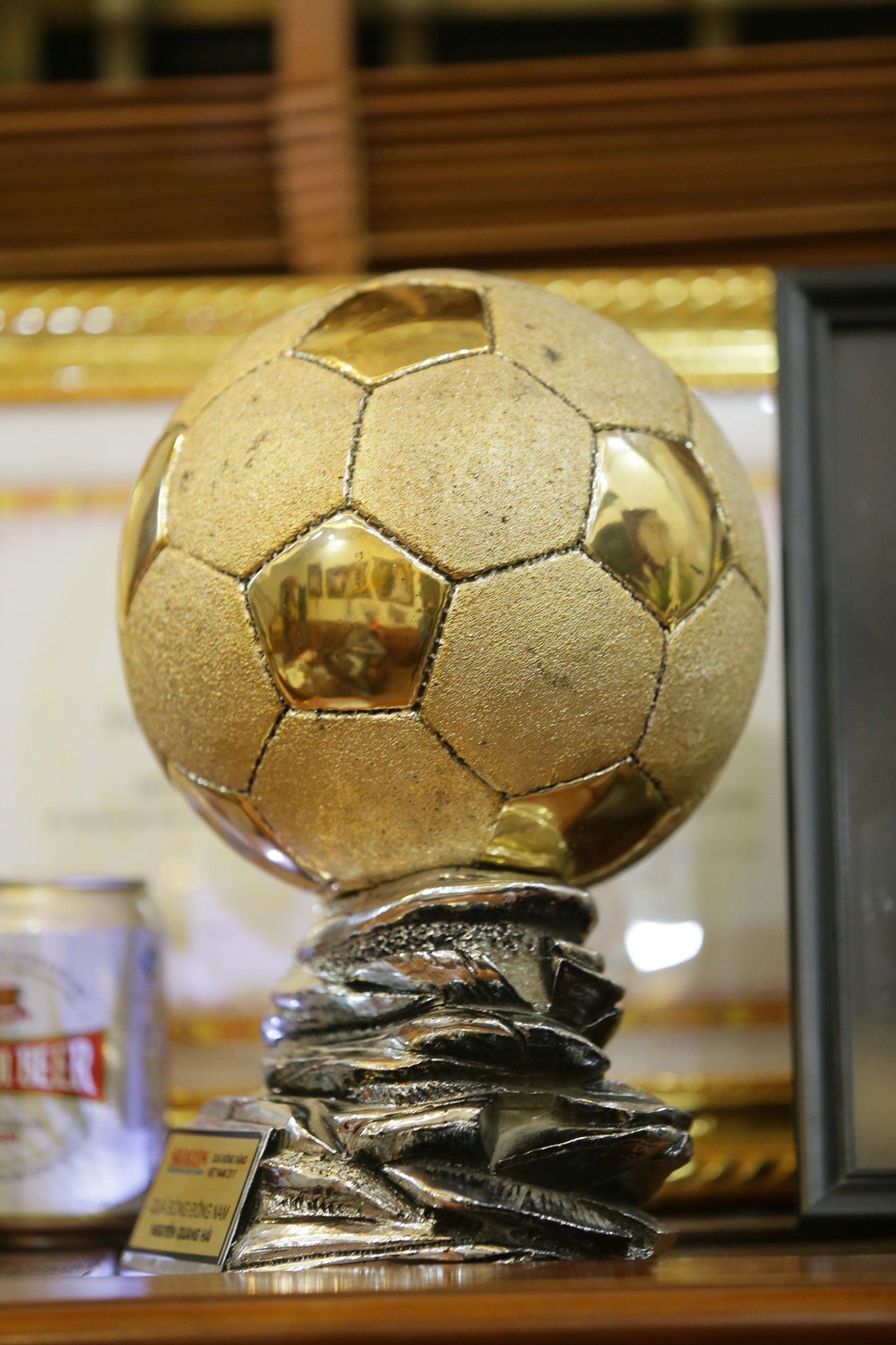 Hình ảnh chiếc cúp quả bóng đồng nam tại nhà danh thủ