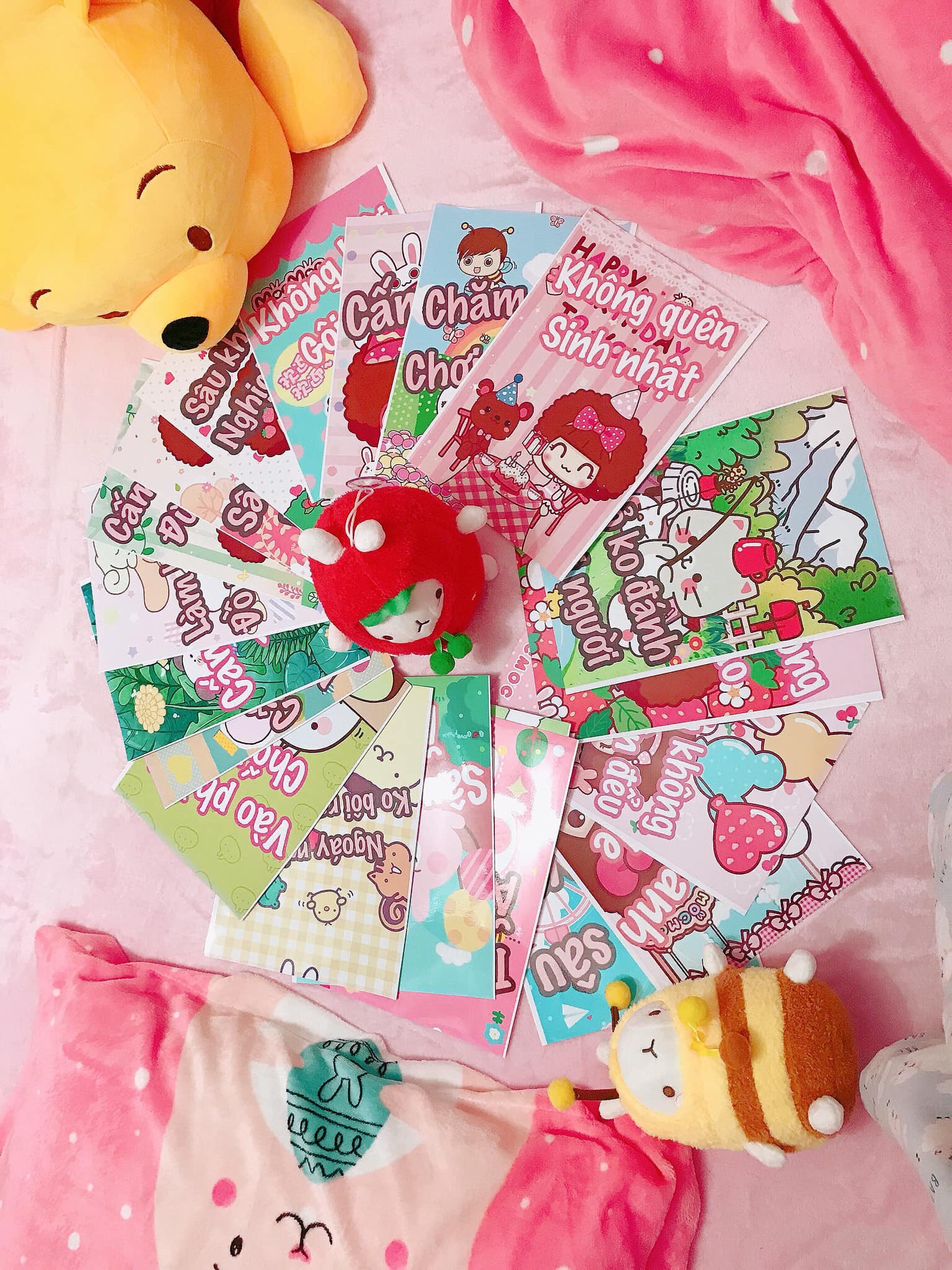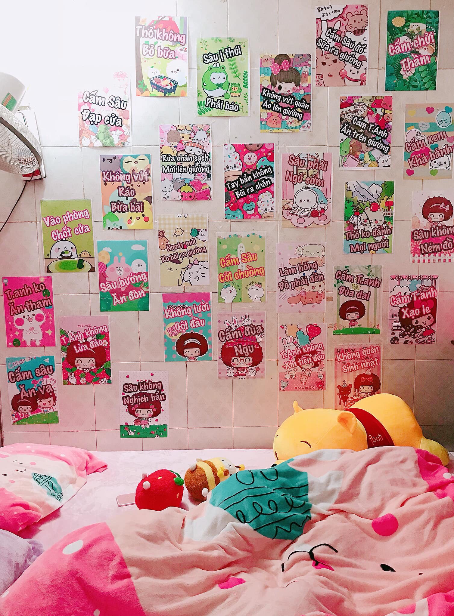 “Dễ thương quá cơ, chắc đây là phòng của trẻ con à chứ mà của vợ chồng thì hài quá. Cách này hay phết như kiểu trước mình muốn học thuộc lòng cái gì đều dán lên tường ấy. Hy vọng là năm mới tới bớt phải mắng chồng mắng con nha”, A.H nói.