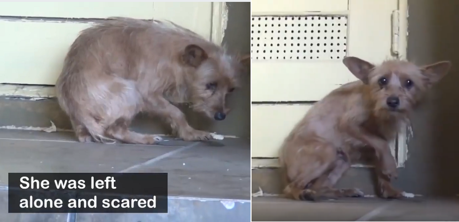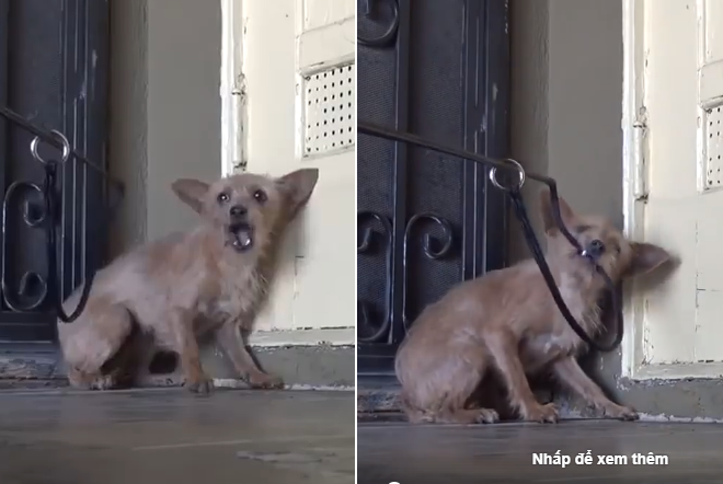 Chú chó bị bỏ rơi và trông rất sợ hãi