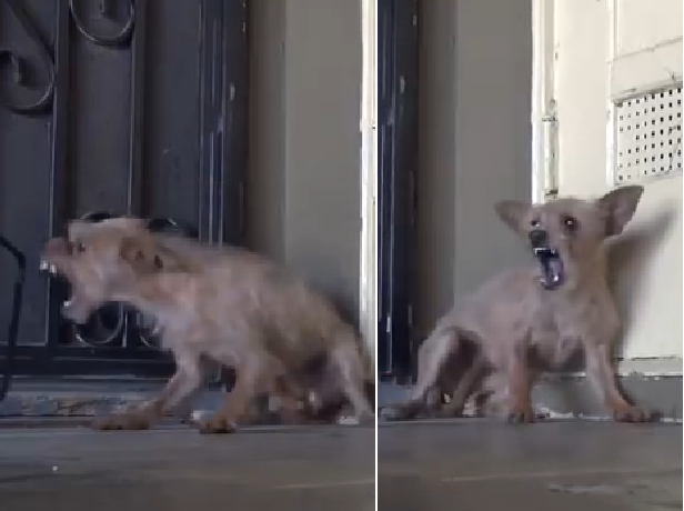 Mở đầu clip, ai nấy cũng đều phải xót xa trước hình ảnh một chú chó gầy giơ xương, với ánh mắt vô cùng tuyệt vọng. Hẳn là chú chó này đã bị bỏ đói và hành hạ rất lâu, khiến em không còn tin tưởng vào con người nữa. Khi đội cứu hộ tiếp cận, em phản ứng lại với một thái độ hung hăn.